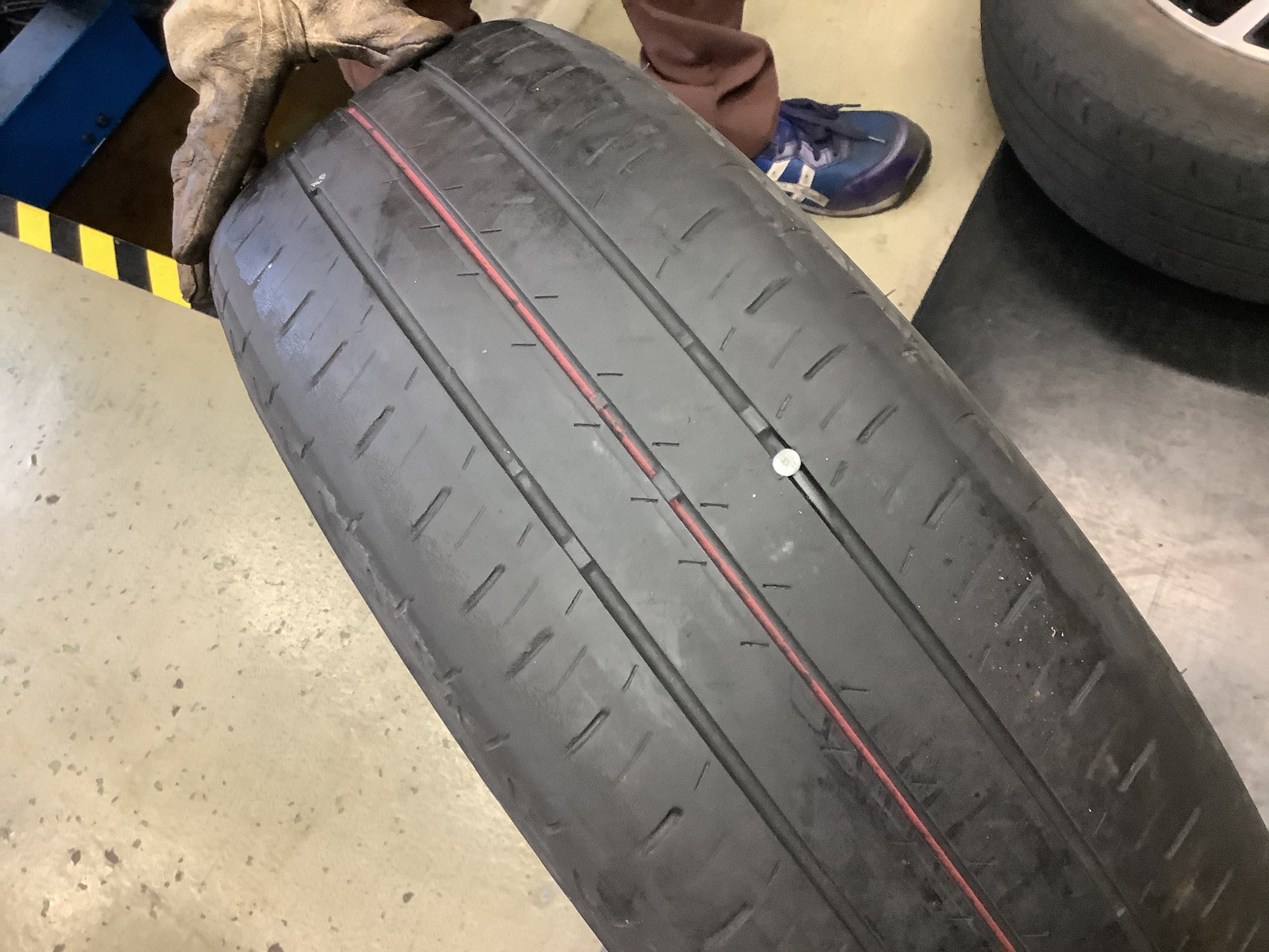 タイヤを見てみますとパンク以前に溝が全く無く・・・。