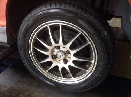 スタッドレスタイヤから夏タイヤへの履き替えでご来店でしたが、タイヤの問診をさせて頂いたところ、残溝も少なくセリアルも古かったので交換となりました。