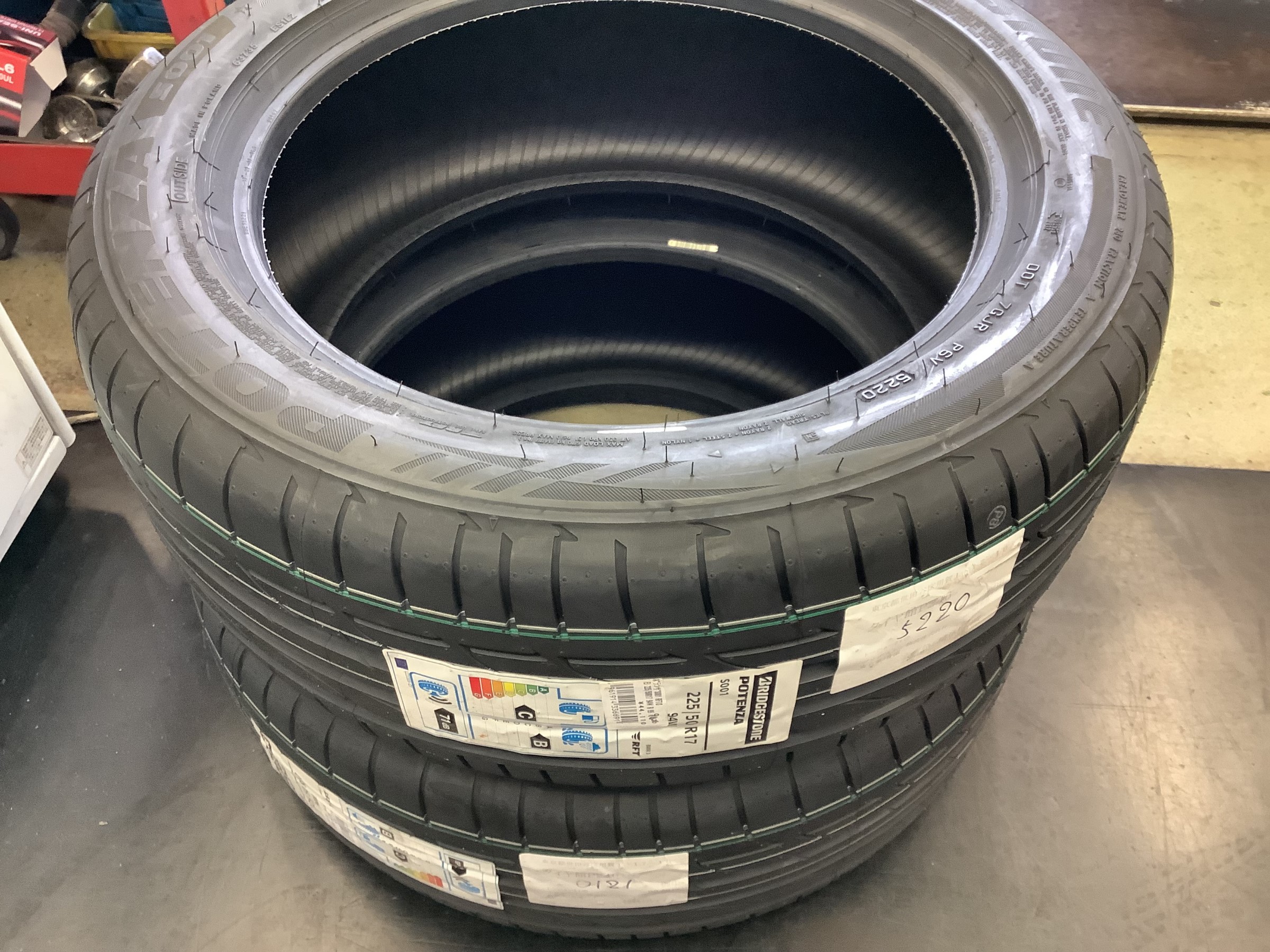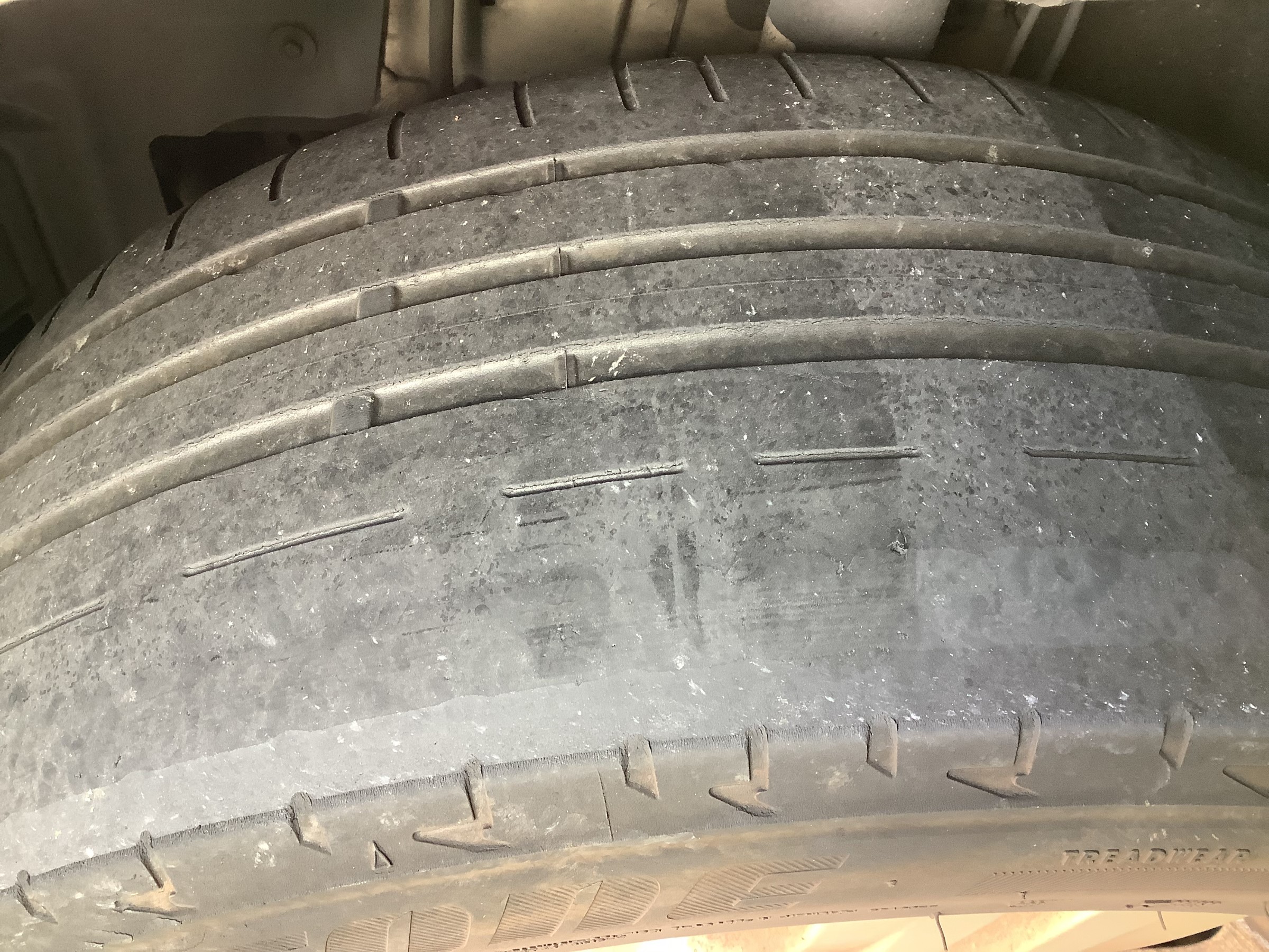作業前のタイヤはツルツルでかなり危険な状態でした。