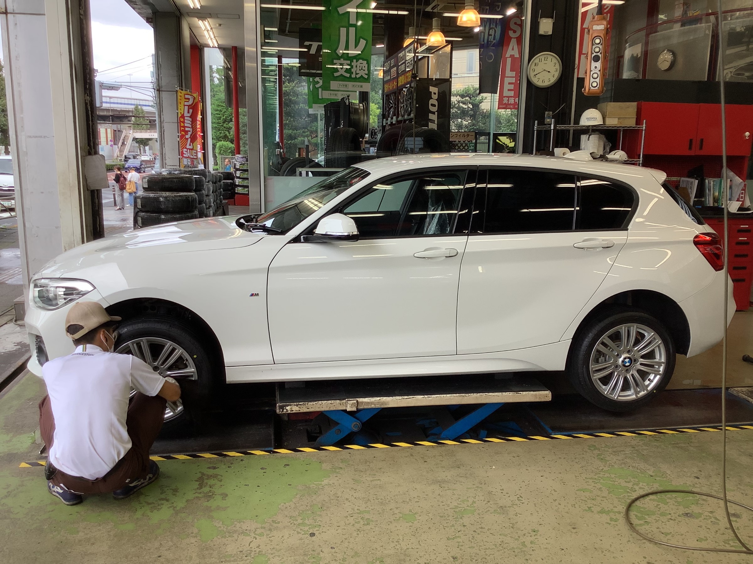 BMWのコンパクト、1シリーズのタイヤ交換です。
