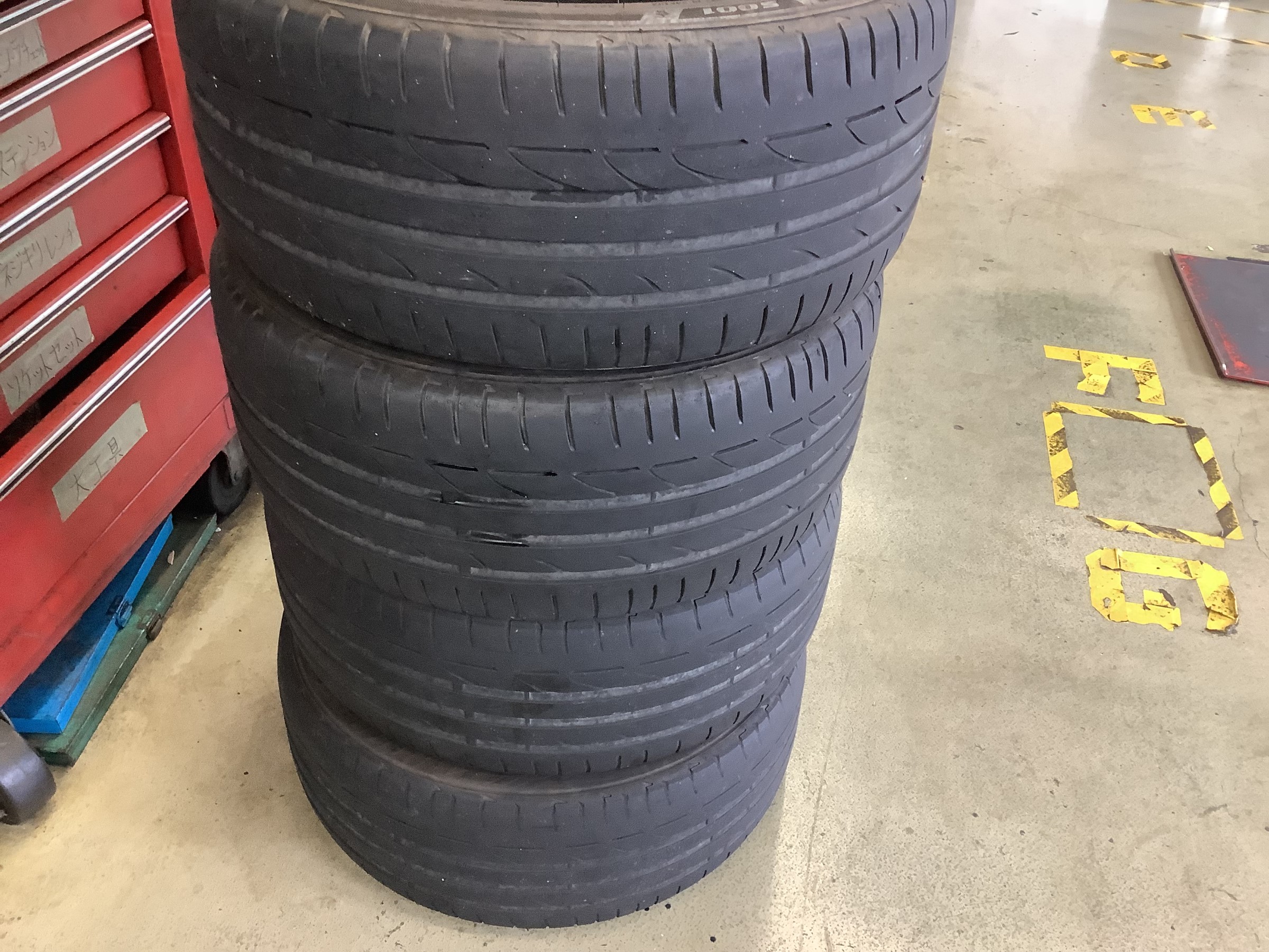 取り外したタイヤはひび割れも多く、偏摩耗も起きてました。