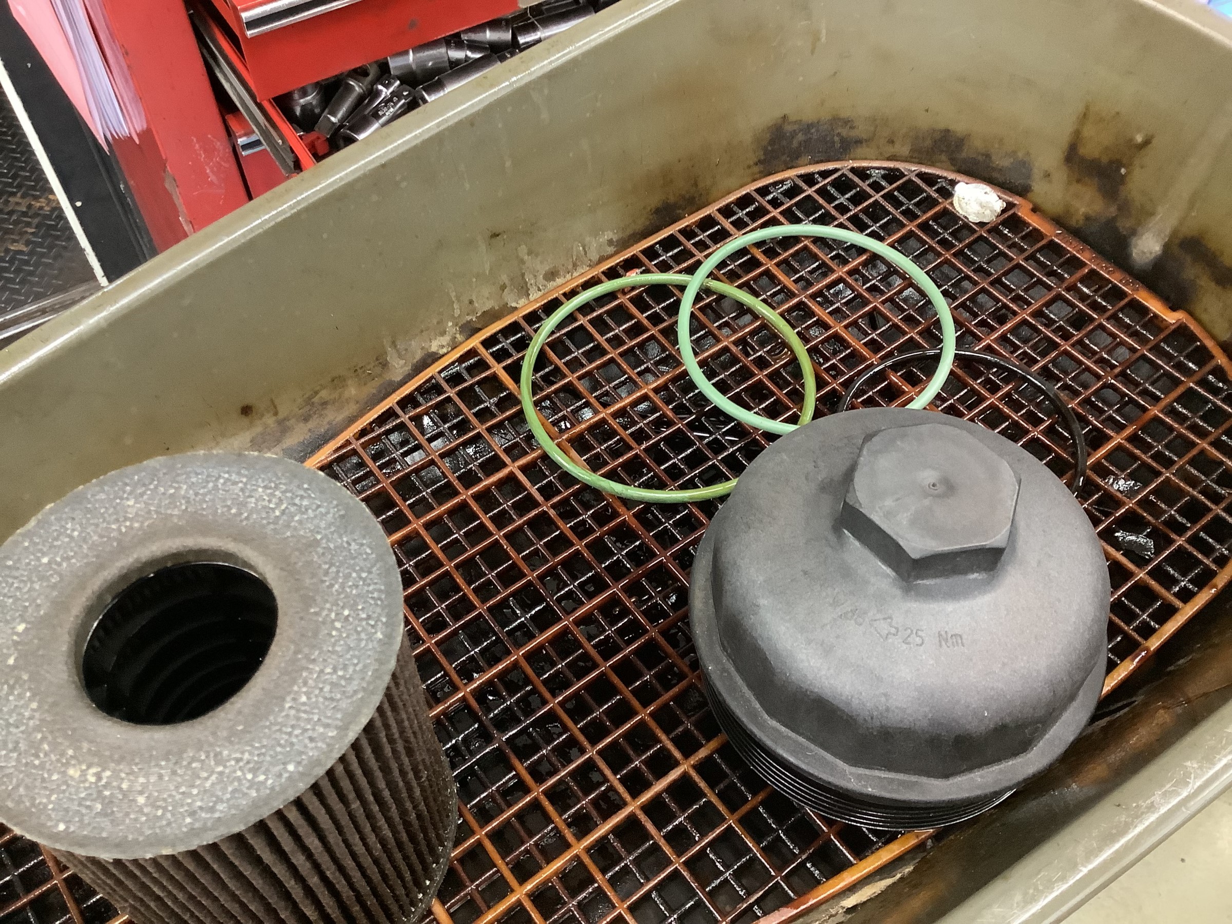 ダクトやファンを外してオイルフィルターが顔を覗かせます。