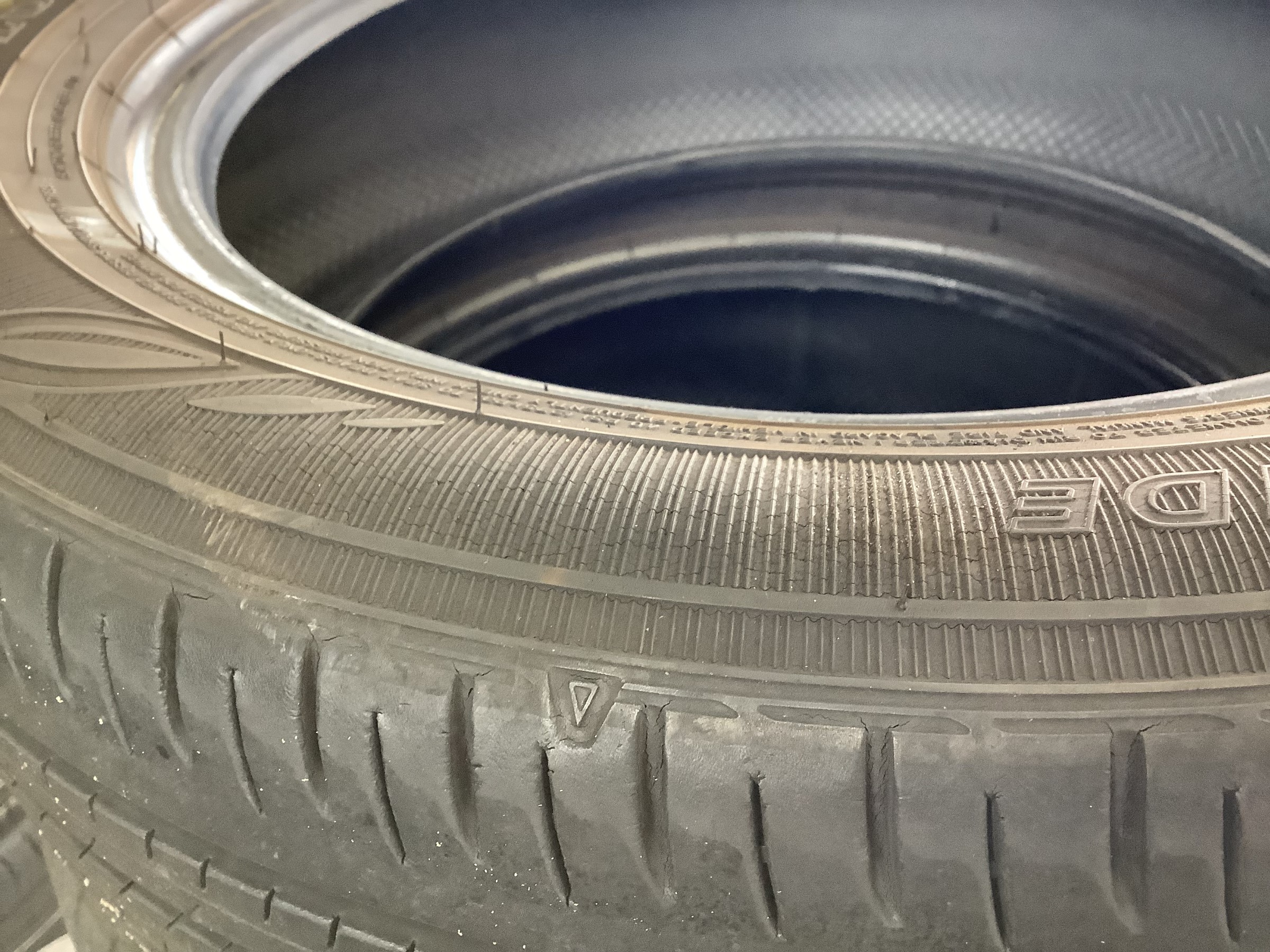 距離はあまり走っておらず残溝はありますが、ひび割れがかなり酷い状態でした。