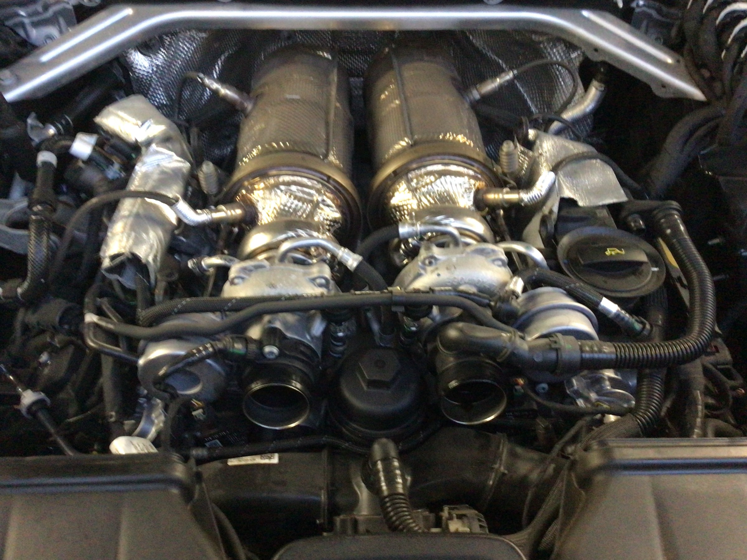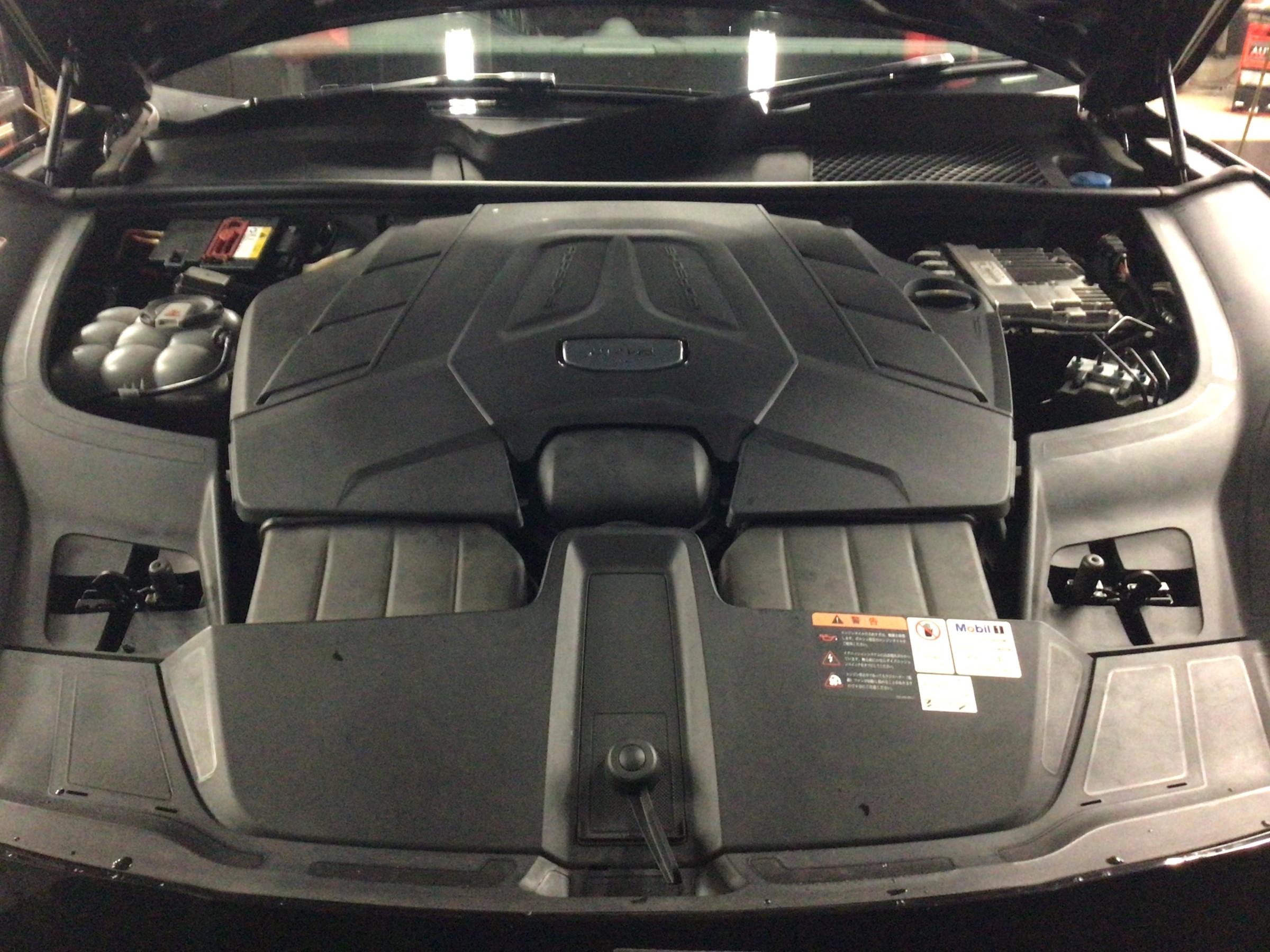 また、こちらのカイエンもレベルゲージが付いていませんので、エンジンオイルを十分暖めてから油量測定をしなければなりませんので、時間は一般的なオイル交換よりも大幅にかかってしまいます。