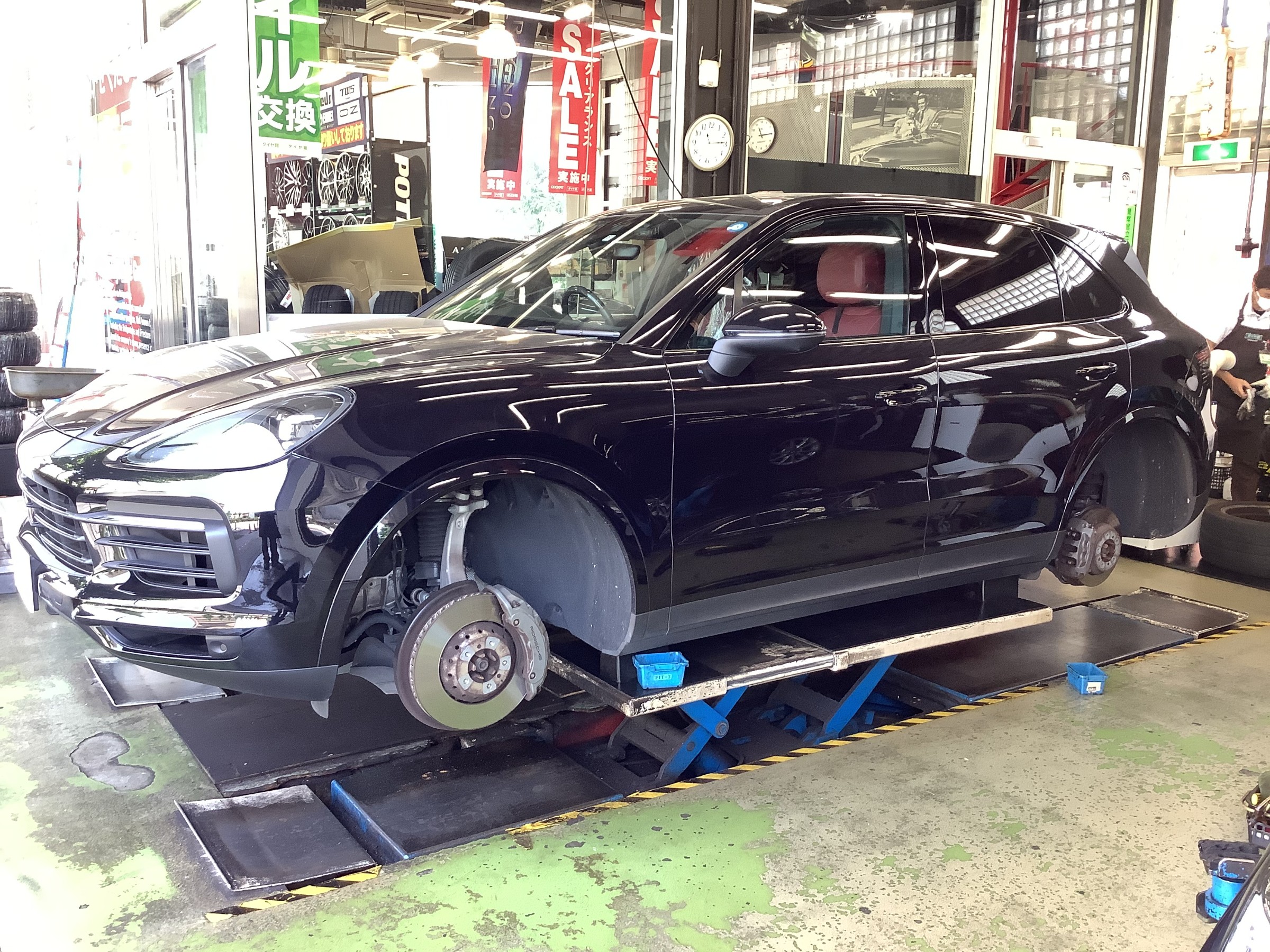 連日猛暑日を記録しつつある今日この頃、本日はカイエンのタイヤ交換をご紹介します。