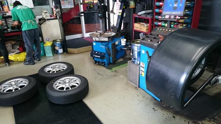ステージア タイヤ交換からの〜アライメント。