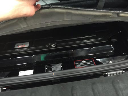 リアハッチを開けて、カバーをめくって、金属のカバーを外すと