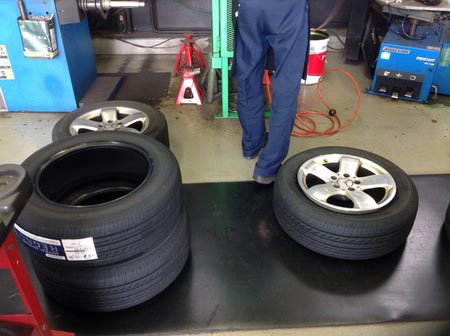 DMを見てご来店されたメルセデスベンツ W211のタイヤ交換です。