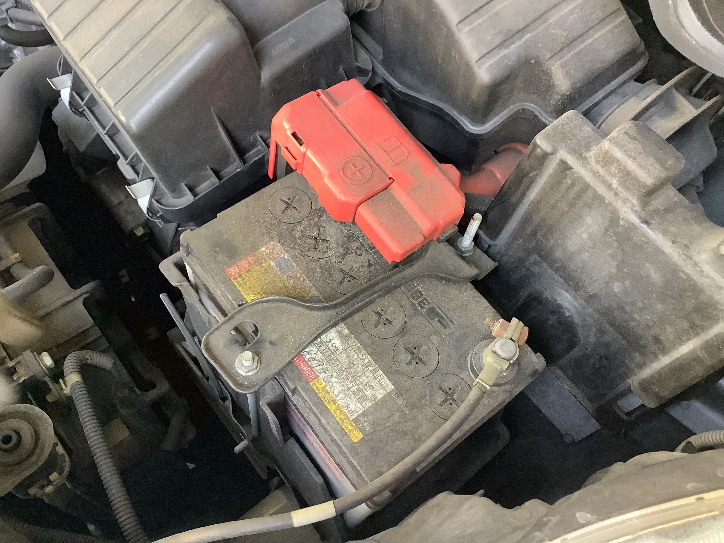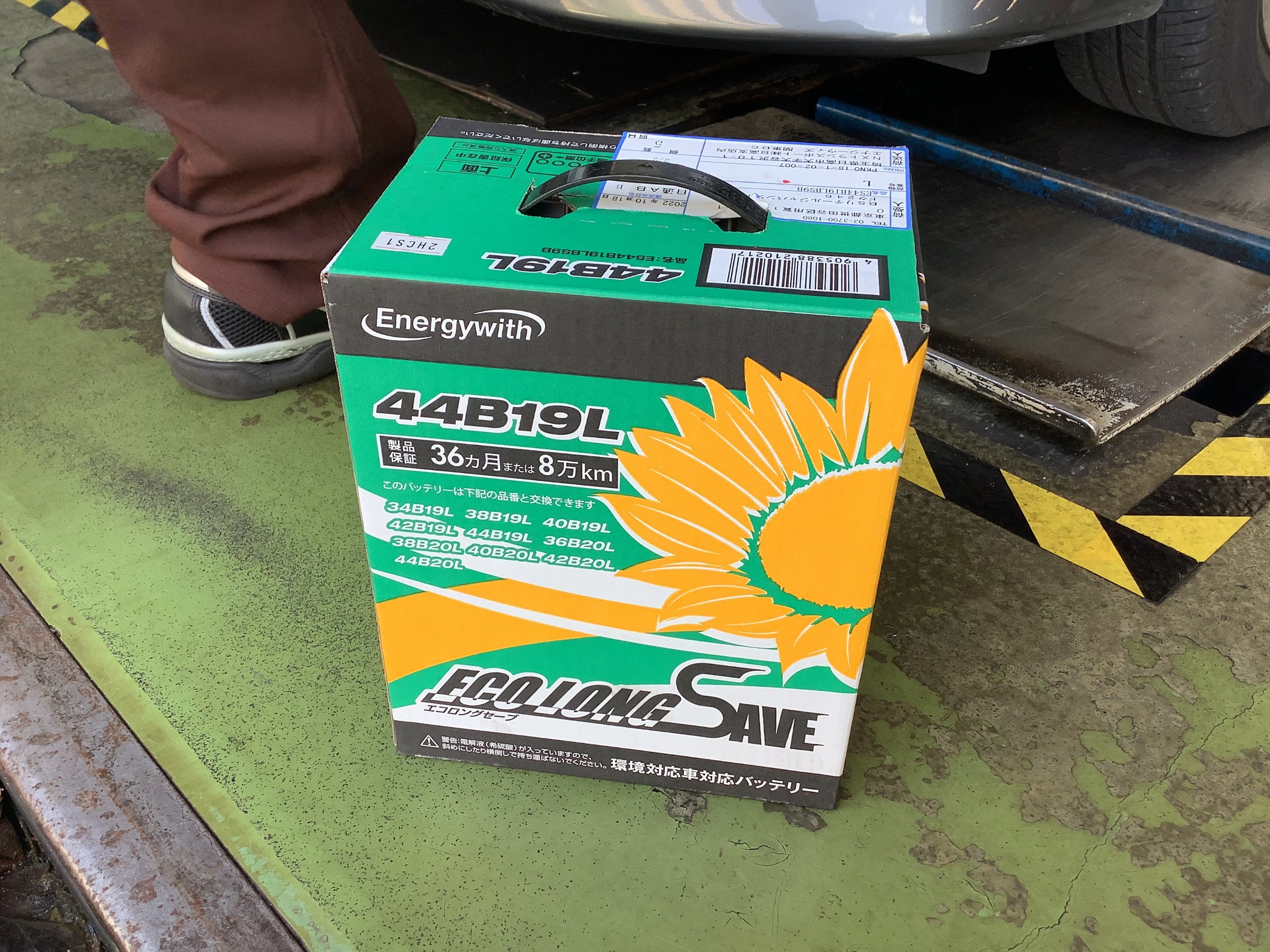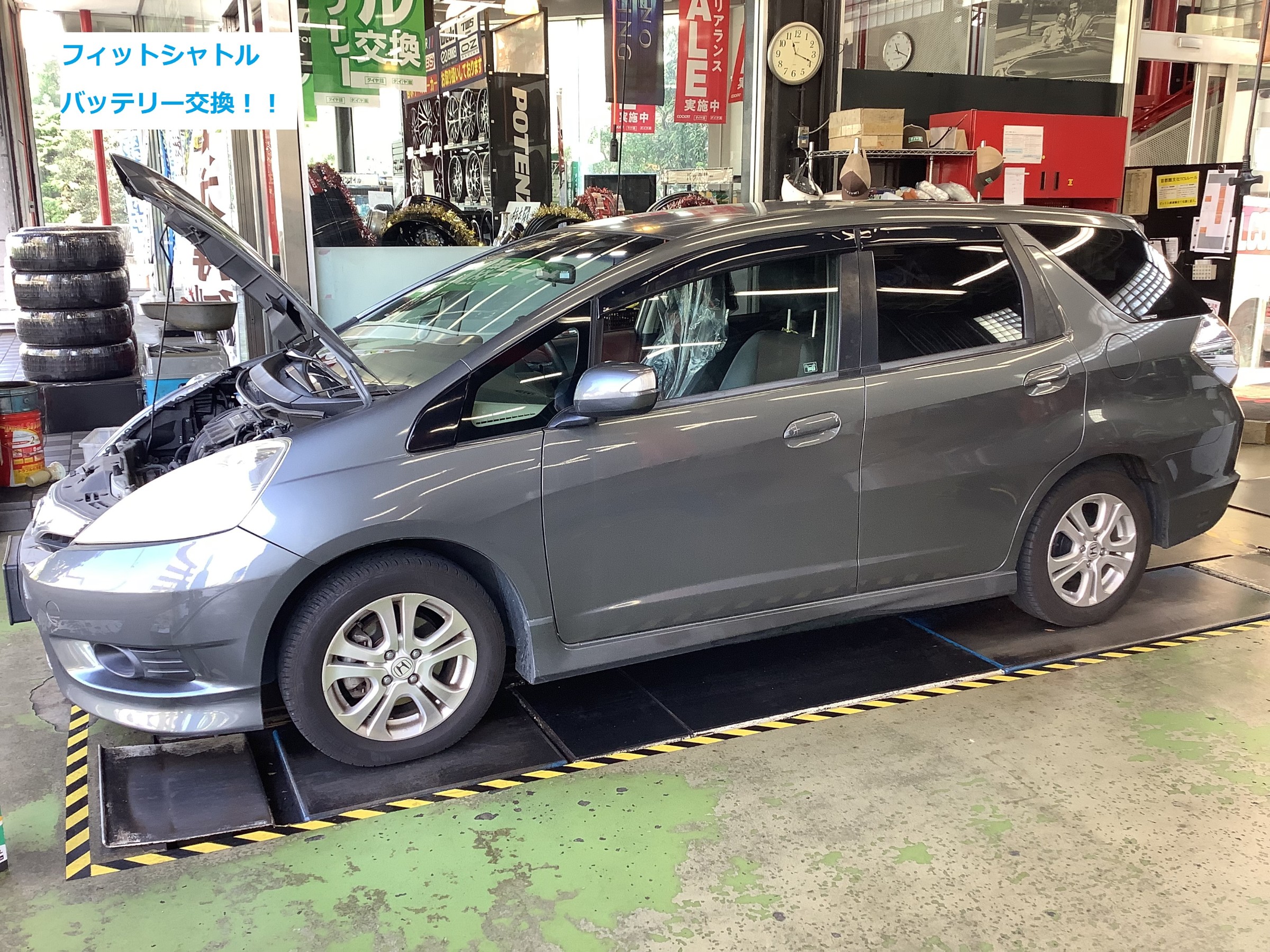車検でお預かりしているフィットシャトルのバッテリー交換です。