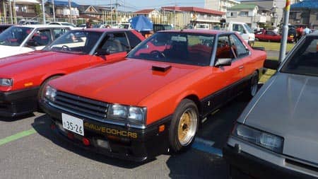 写真3・・・この手のイベントでは、エントリー車ではなくギャラリー車も「その手のクルマ」で多数やってきます。 マシンRS仕様のこのクルマもその一台。 ちなみにR30は年式が新しすぎてエントリーできないのですが(笑)、毎年10台以上集まります。 このクルマの見所は3526のナンバーは当たり前としても、平仮名も忠実に再現されていると言う点です。 平仮名は希望ナンバーでも計算しないと取得出来ないので、技量が問われます。