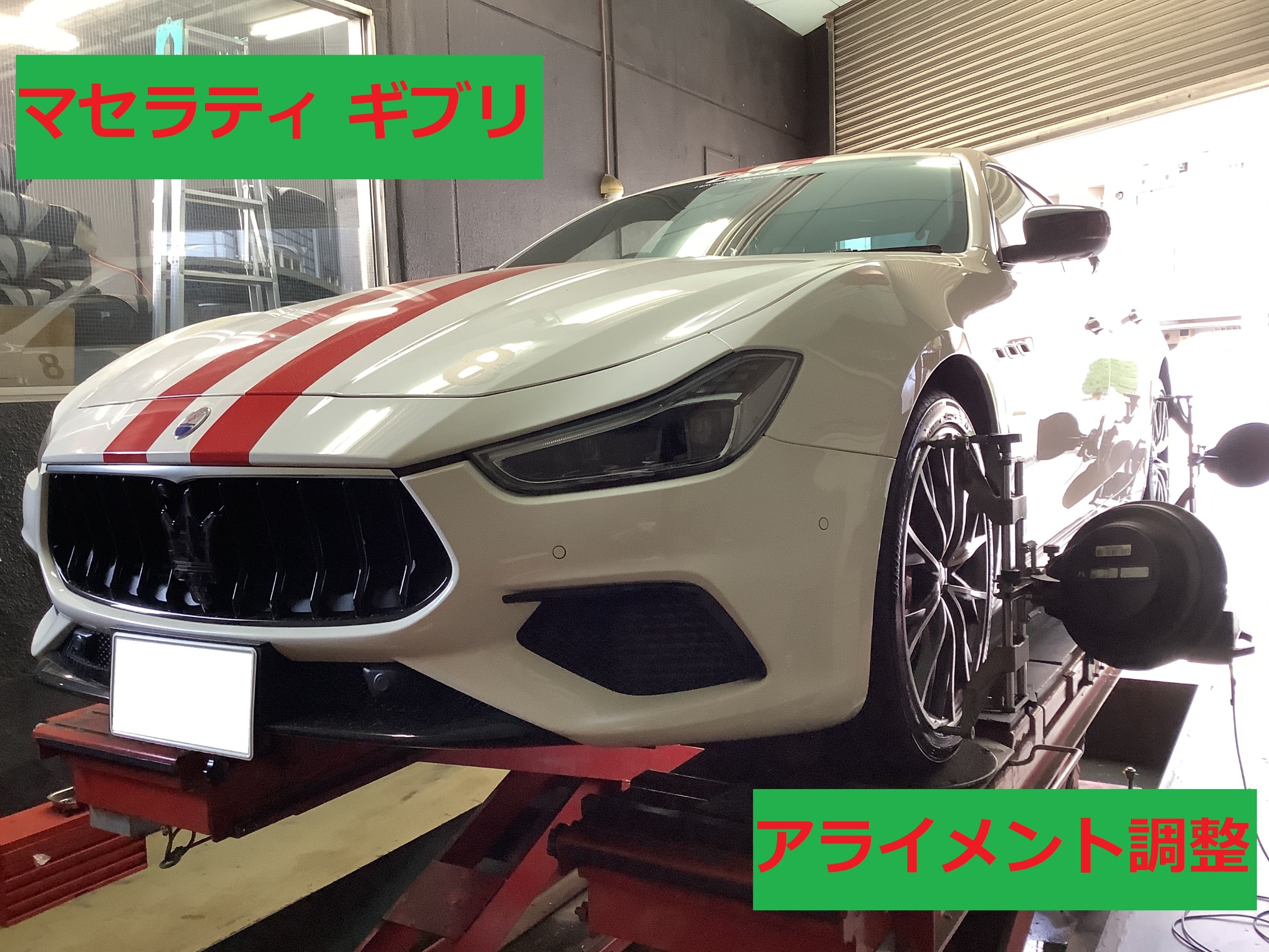 以前アライメント調整をさせて頂いたギブリがタイヤ交換後のアライメント調整で再来店です(*´▽`*)