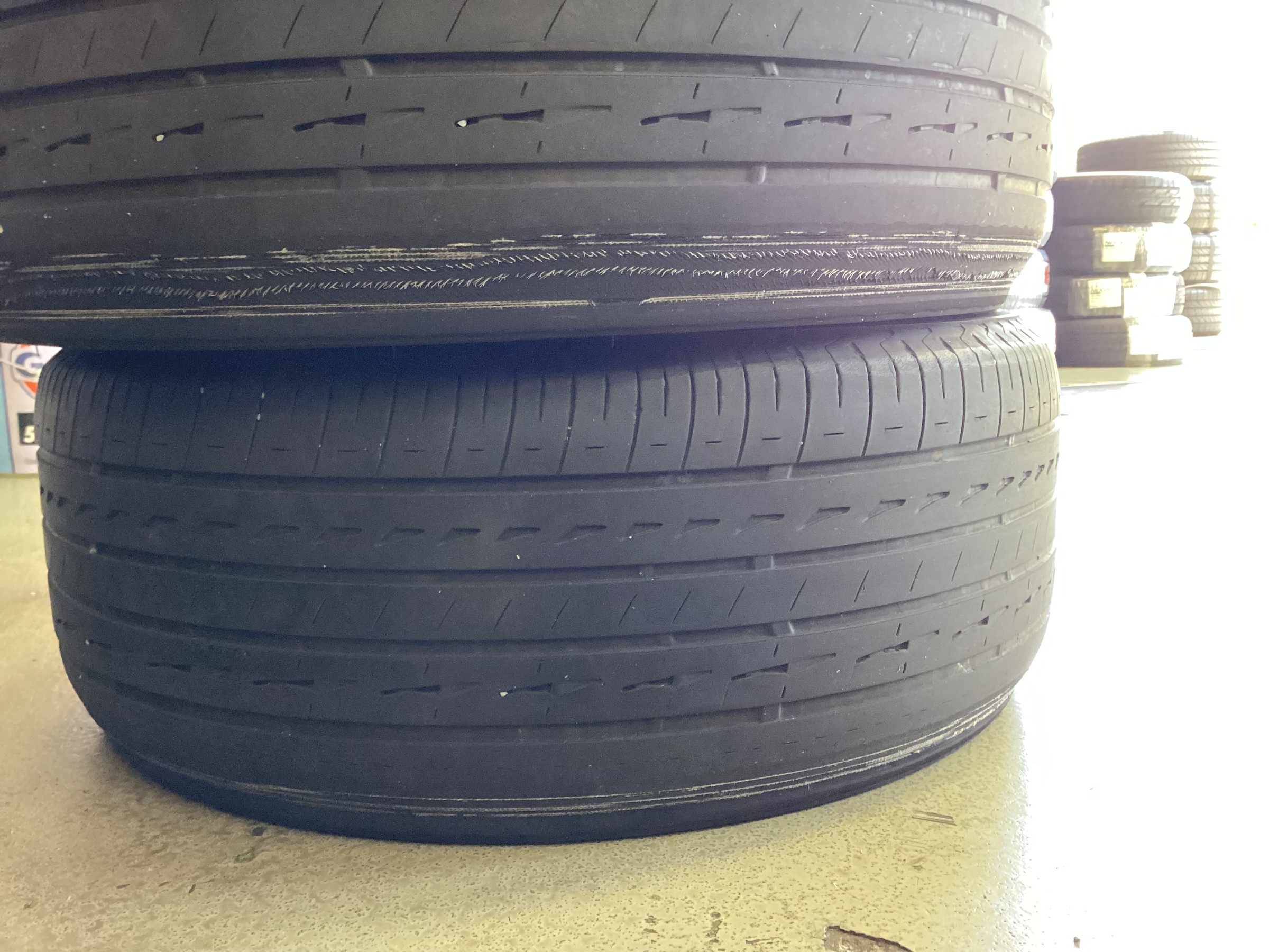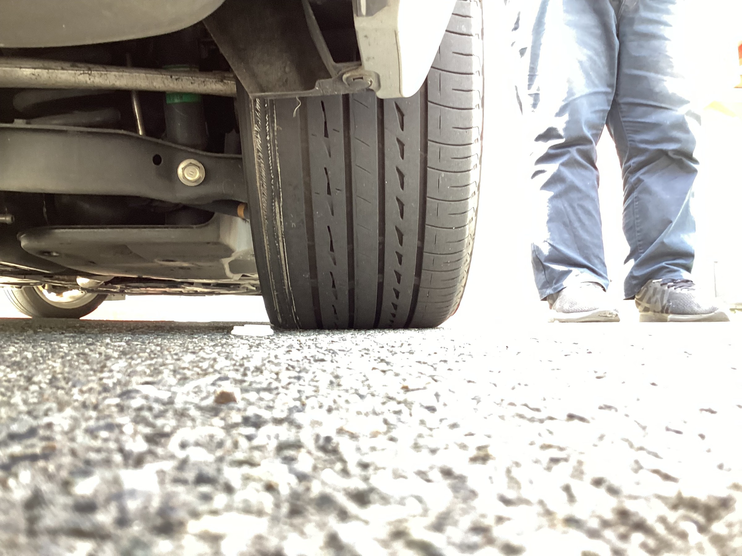 クルマを覗き込むと著しい偏摩耗が確認出来ます。