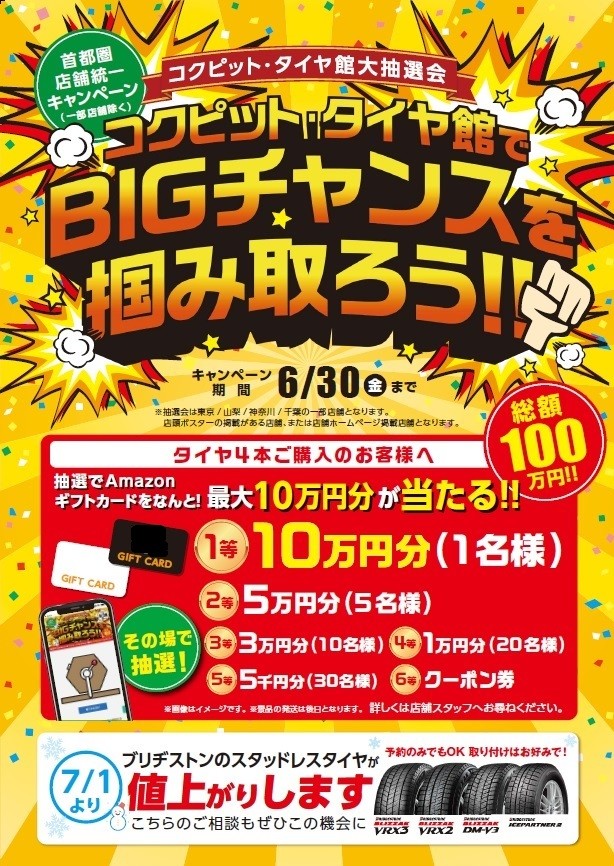 『コクピット・タイヤ館でBIGチャンスをつかみ取ろう!!』