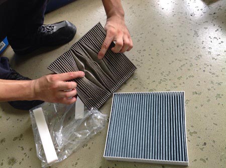 日産車はトヨタやホンダと違い、エアコンフィルター取付部に簡単にアクセスできないケースが多い為、ディーラーさんでも積極的な交換を促していないようですね。