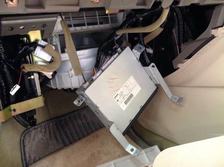 この車もグローブボックスをごっそり外し、ナビユニットを外して初めてアクセス出来ます。