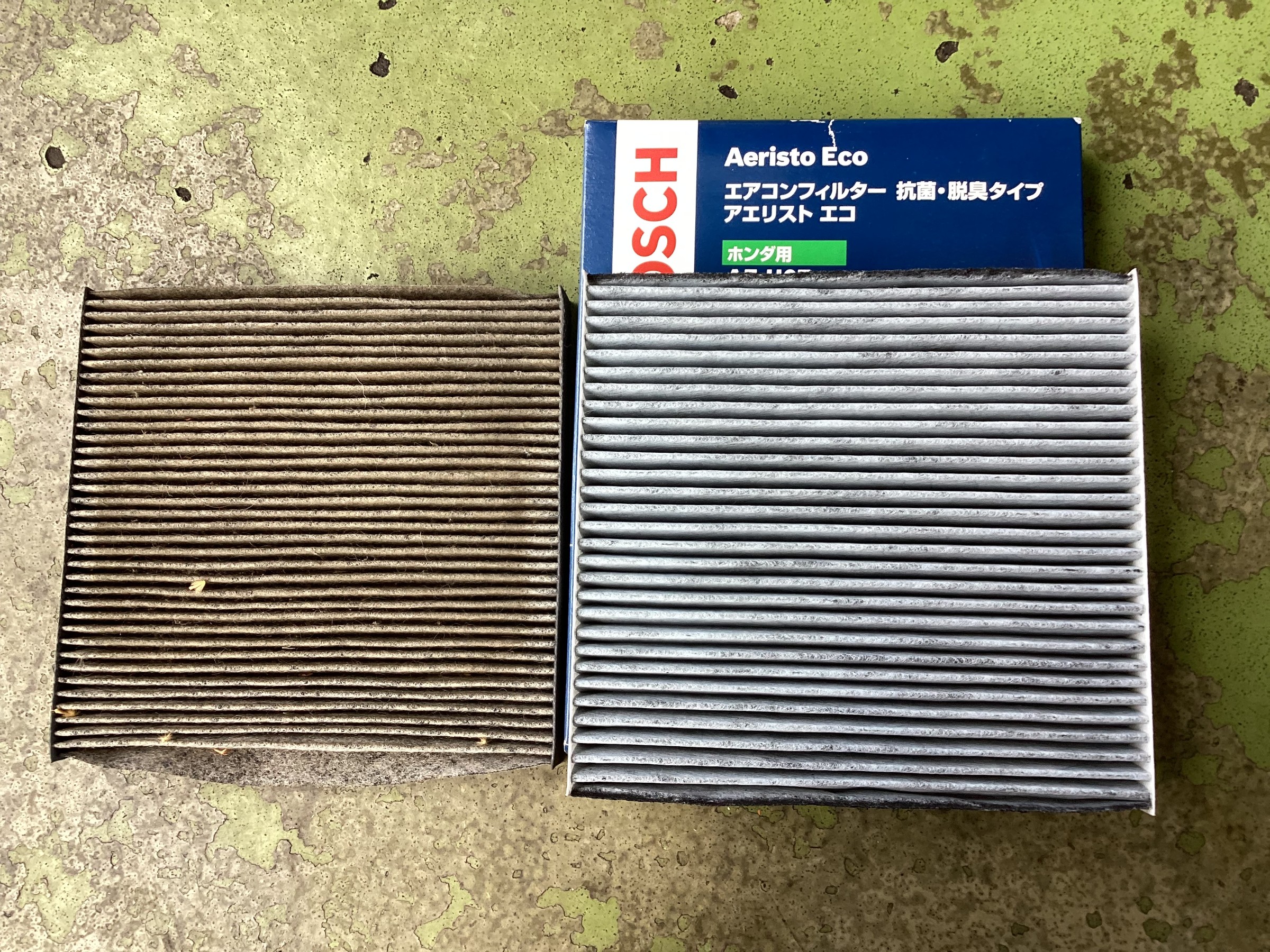 写真には左側が長年使用したフィルターと右側が新品のフィルターです!