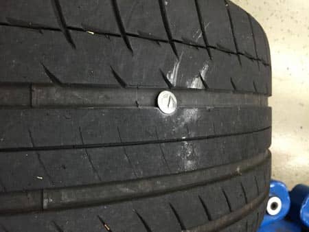 パンク修理のご依頼で入庫のカイエン。