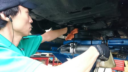 当店では下抜きの場合、オイルブリーダーを用いてオイルパンの下に溜まった廃油も残らず吸い取っています。