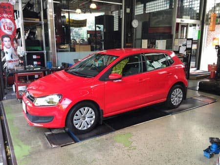 真っ赤なポロのスタッドレスタイヤ履き替えです。
