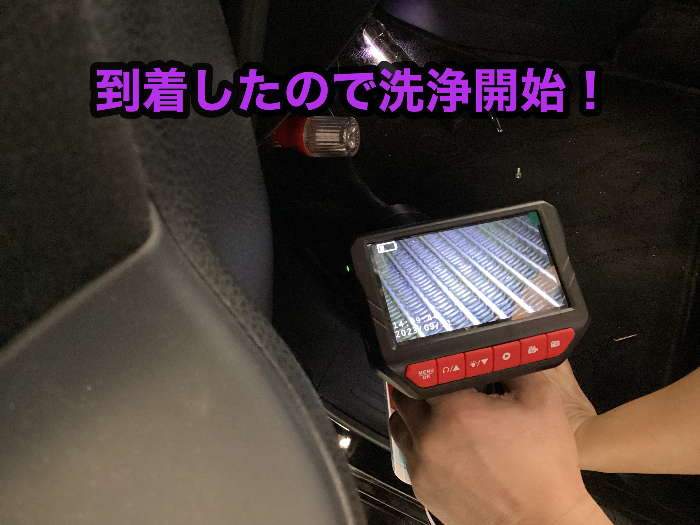 ご覧のようにエバポレーターのフィンに対して洗浄剤をリモコンで噴霧します。