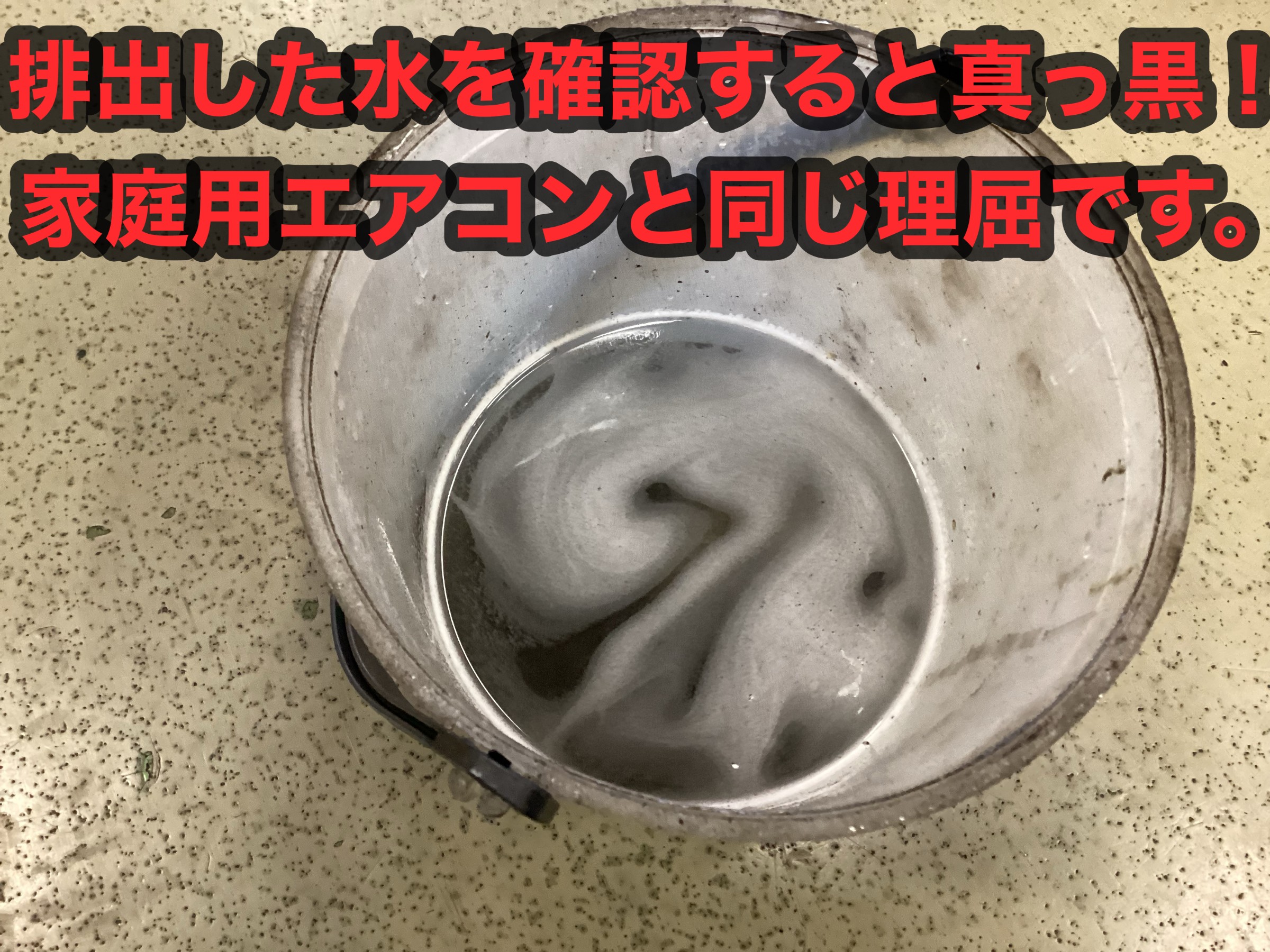 するとフィンに蓄積された汚れがどんどん排水ドレンより流れてきます。