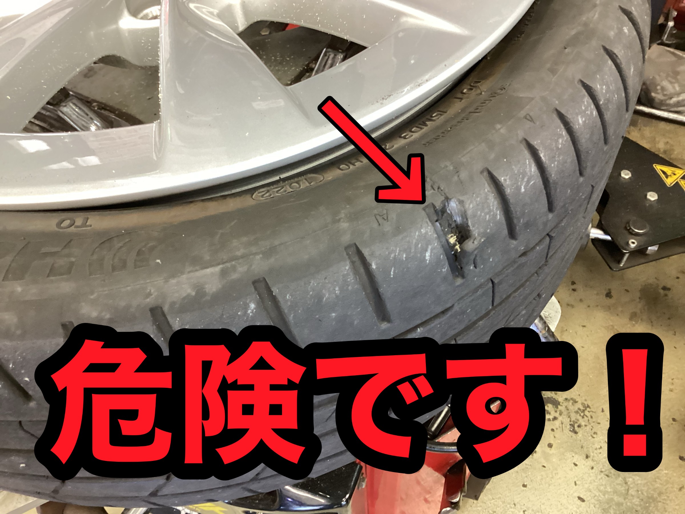 タイヤチェックをするとショルダー部に亀裂が・・・。