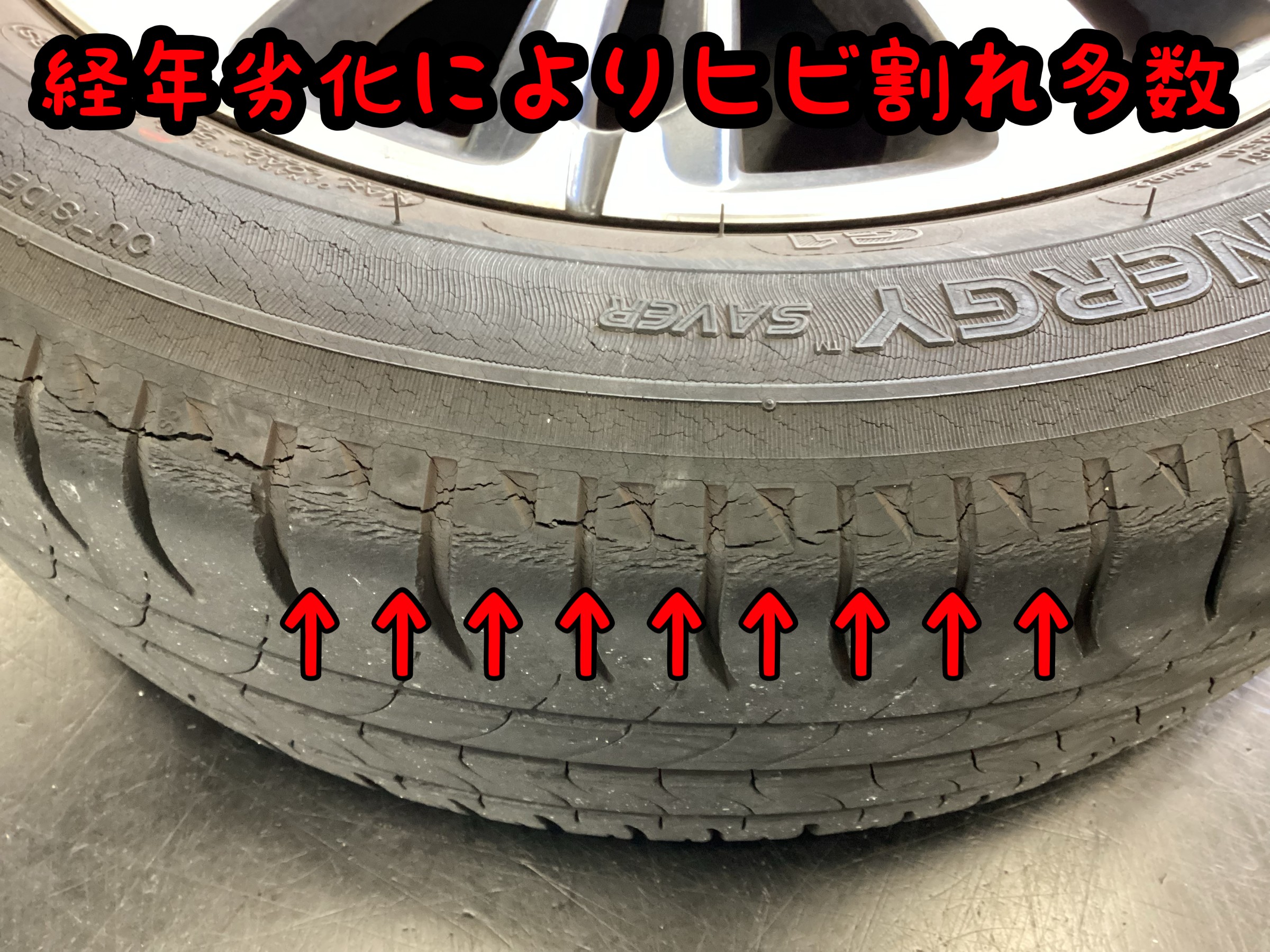 こちらの車は走行距離が少なく溝はあるものの、経年劣化によるひび割れがかなり酷い状態でした。