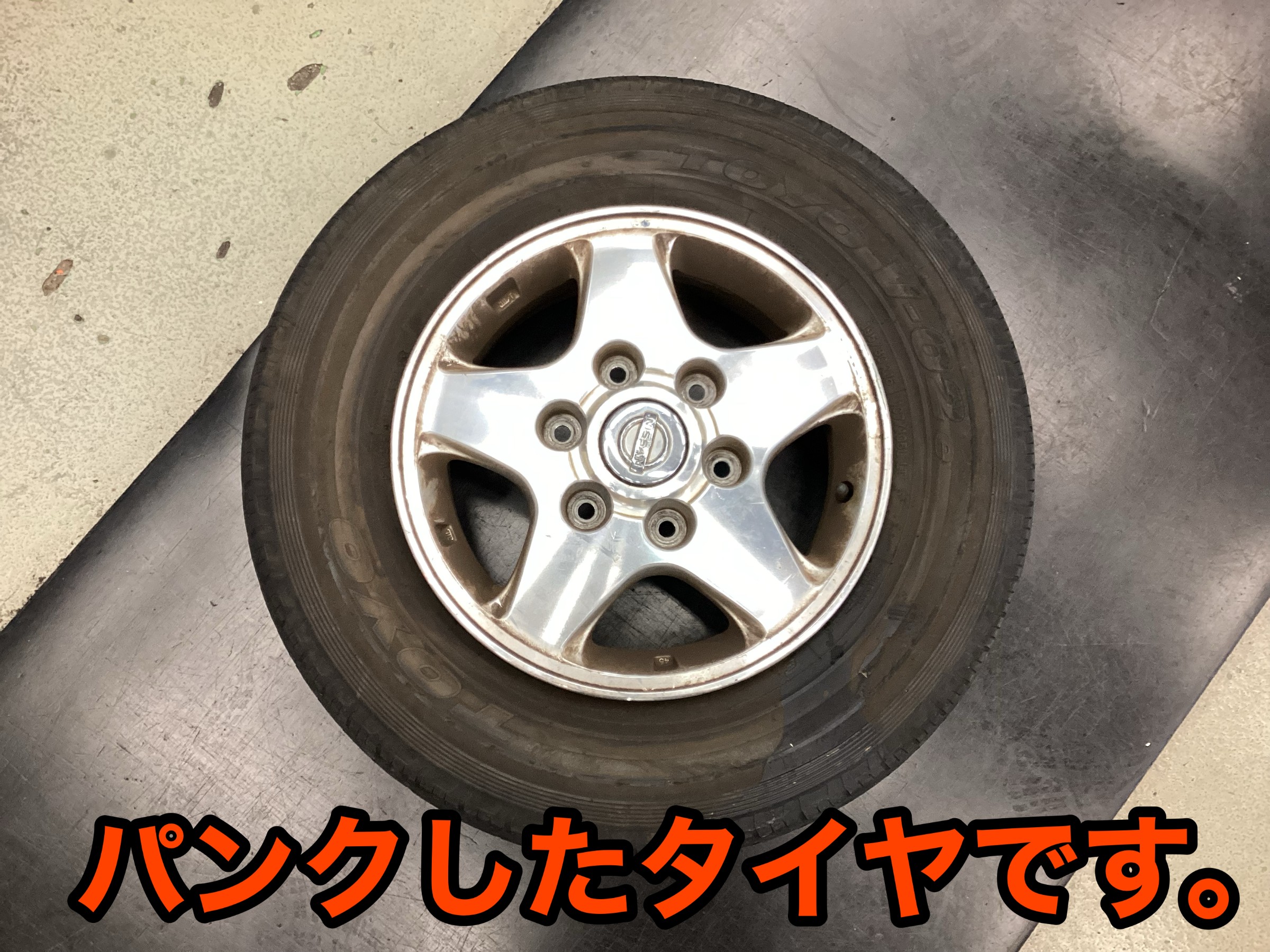 事前にスペアタイヤに履き替えられたとの事、外されたタイヤを確認します。