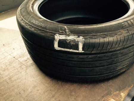今日ご紹介するのはレクサスISです。左リアのタイヤをパンクしてしまい、急遽ディーラーで外面修理を行い、そのまま当店に来られました。タイヤの横の部分はパンクをしても構造上修理が不可能なので、パンク修理ではなくタイヤ一本を交換をすることになりました。