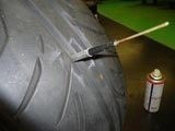 セキュリティコートが乾くと黒くなりタイヤのゴムと一体化します。