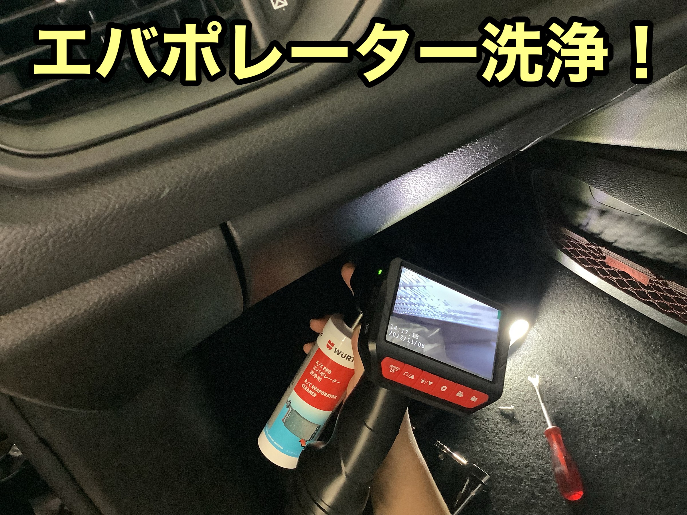 今回はエアコンフィルターの交換と共に、内部のエバポレーターも洗浄します。
