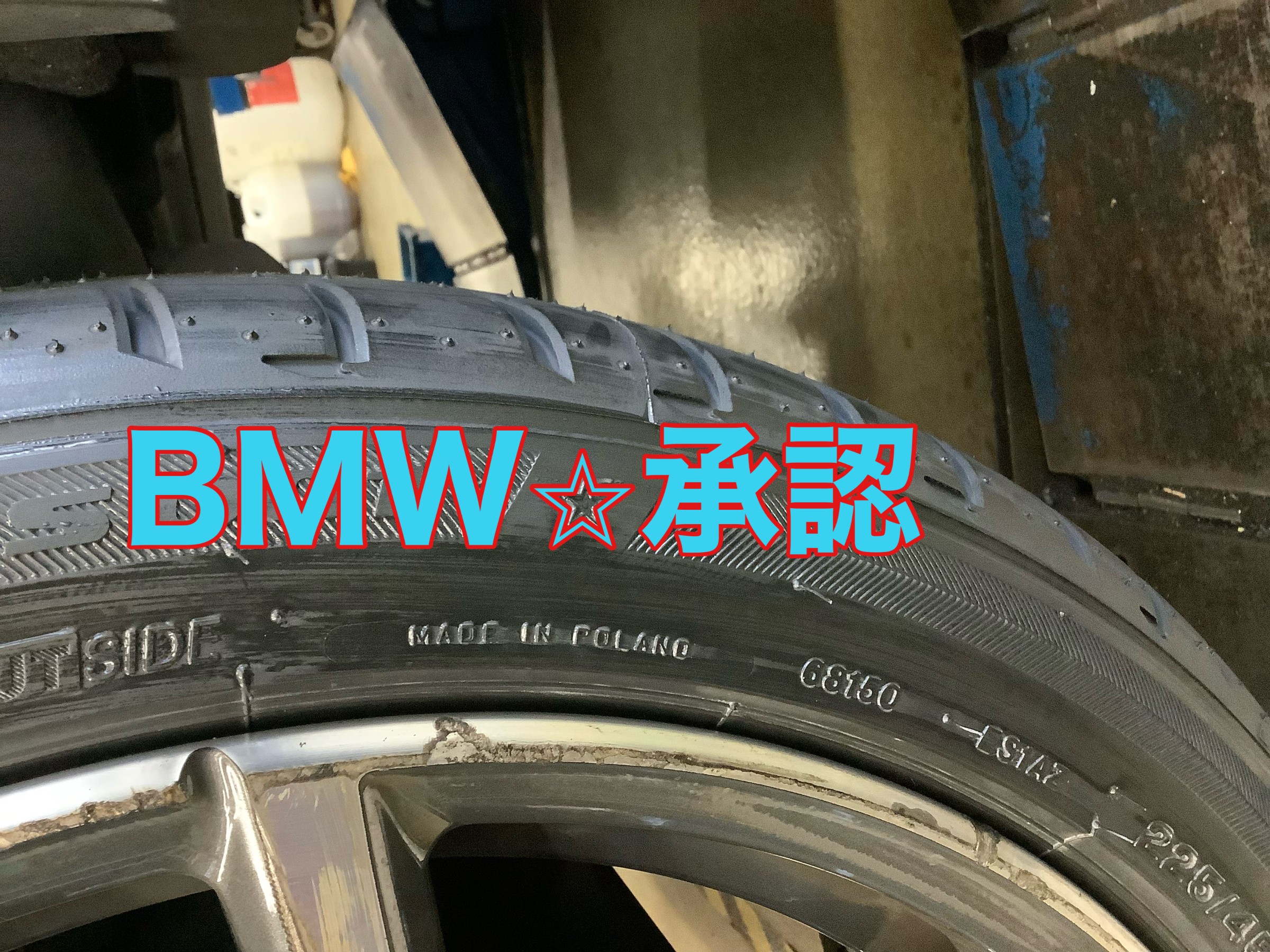 ちなみにタイヤに刻印がありBMW承認タイヤには☆マークがつきます。