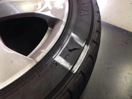 おそらく、縁石などに引っ掛けてしまったものと思われます。