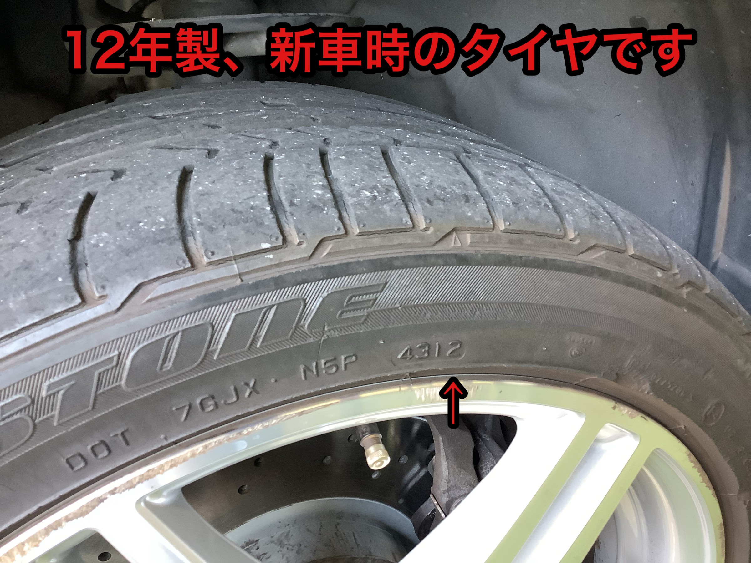 装着されていたのは新車時のタイヤで12年前・・・。