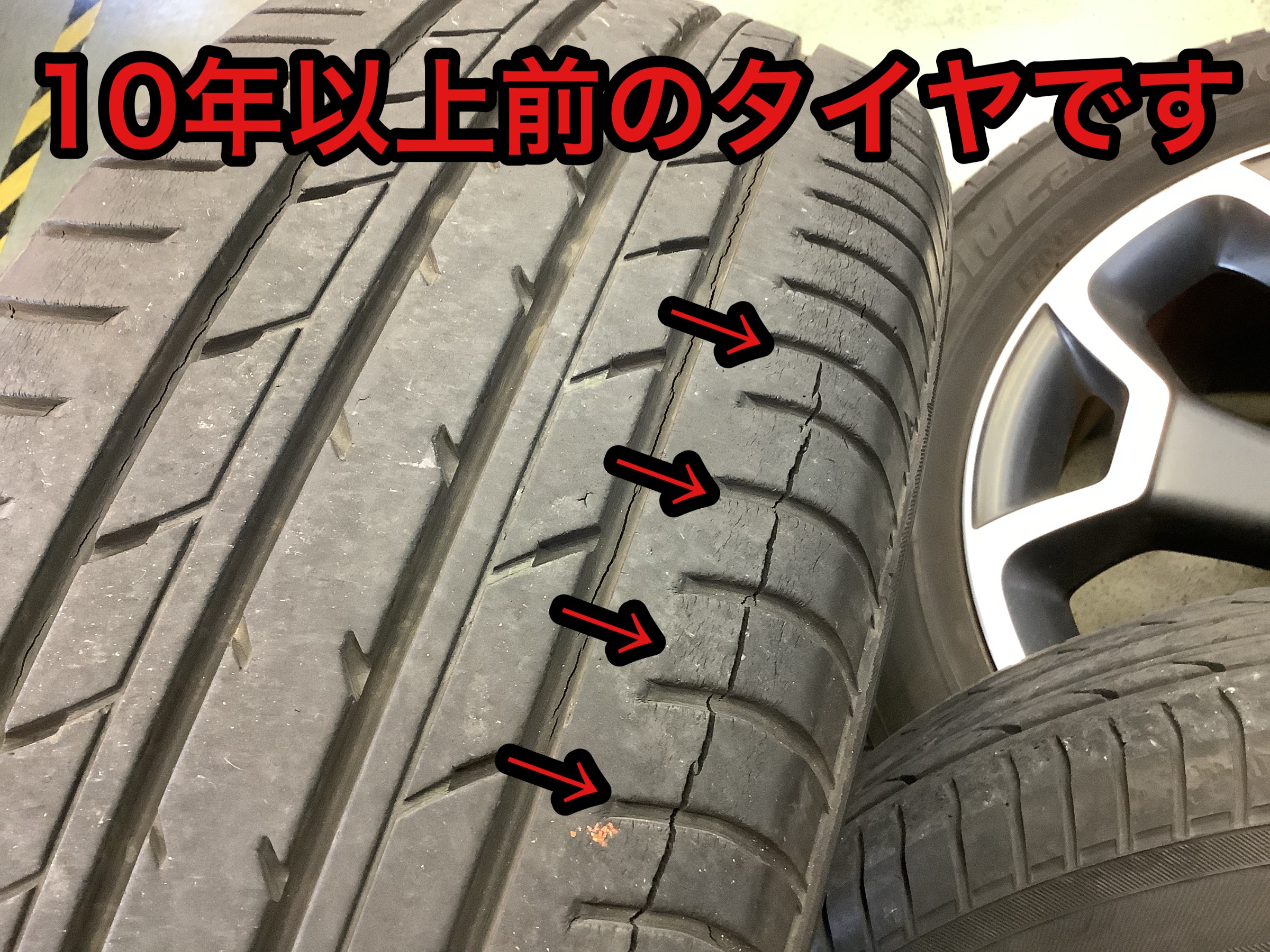 今回は新車から一度もタイヤ交換をされていない・・・詰まる所10年以上経過しています。