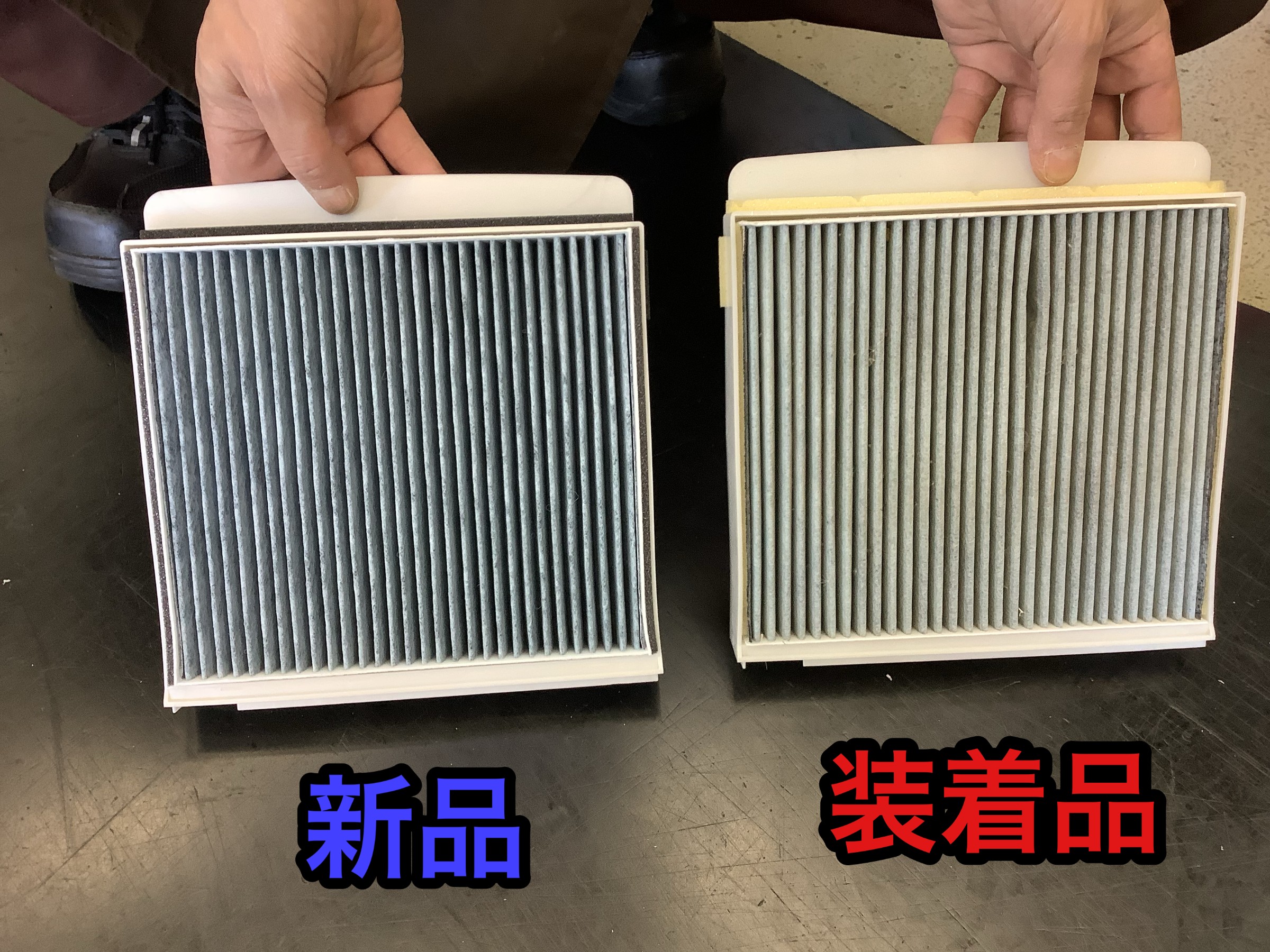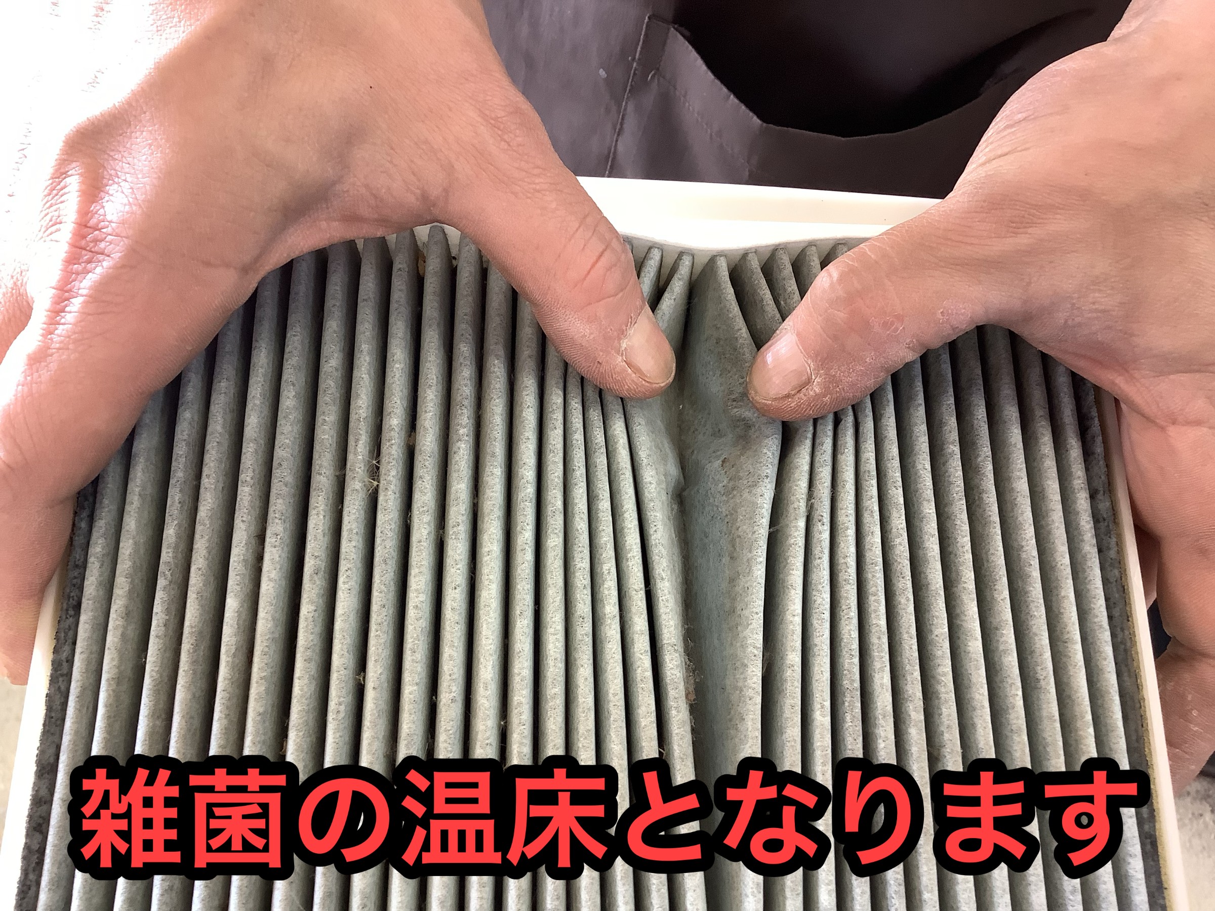 まずは基本のエアコンフィルター、かなりの汚れと変色が目立ってますね。
