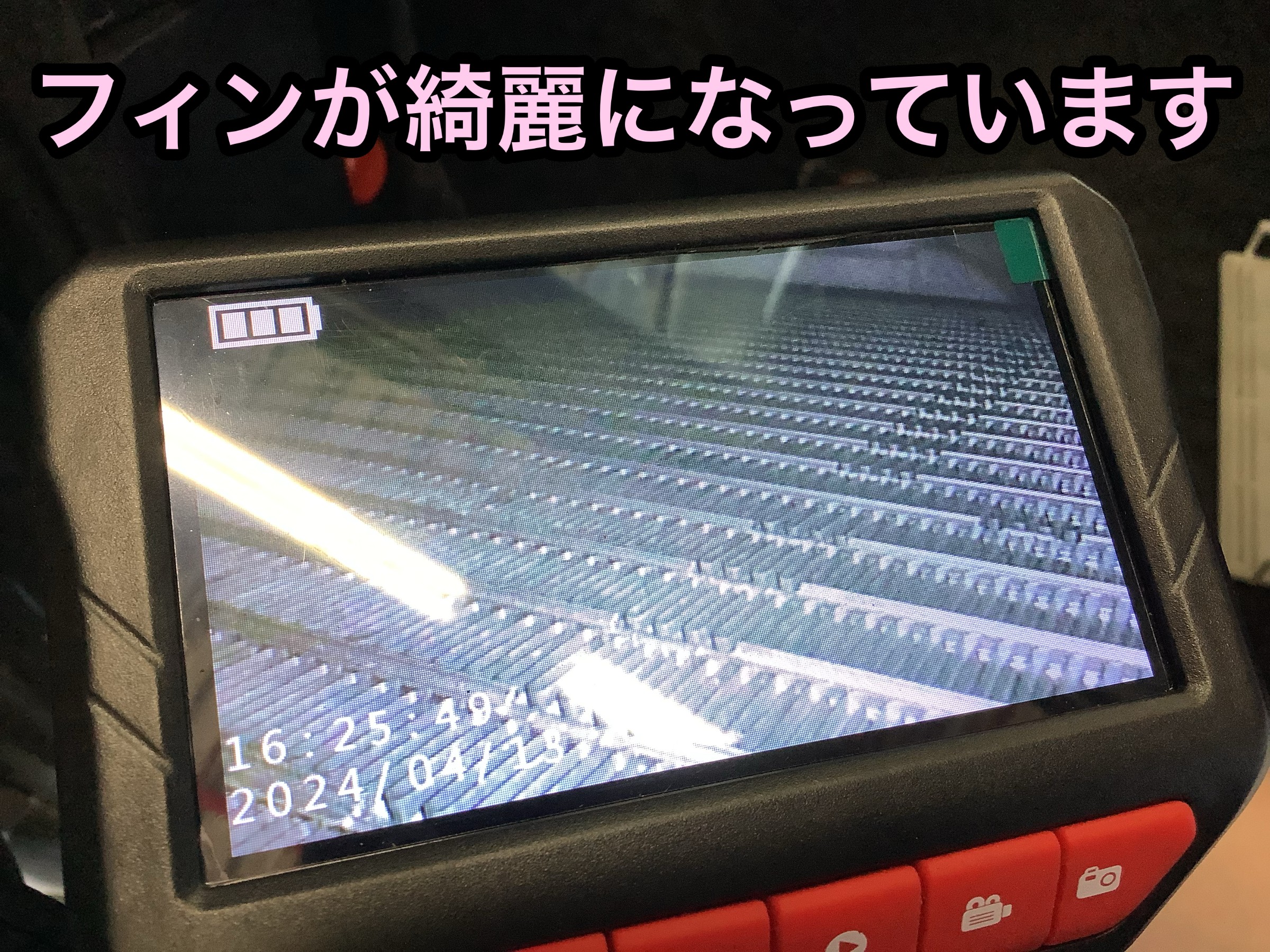 専用の洗浄機を差し込み、モニタリングしながら洗剤を吹き付けます!!