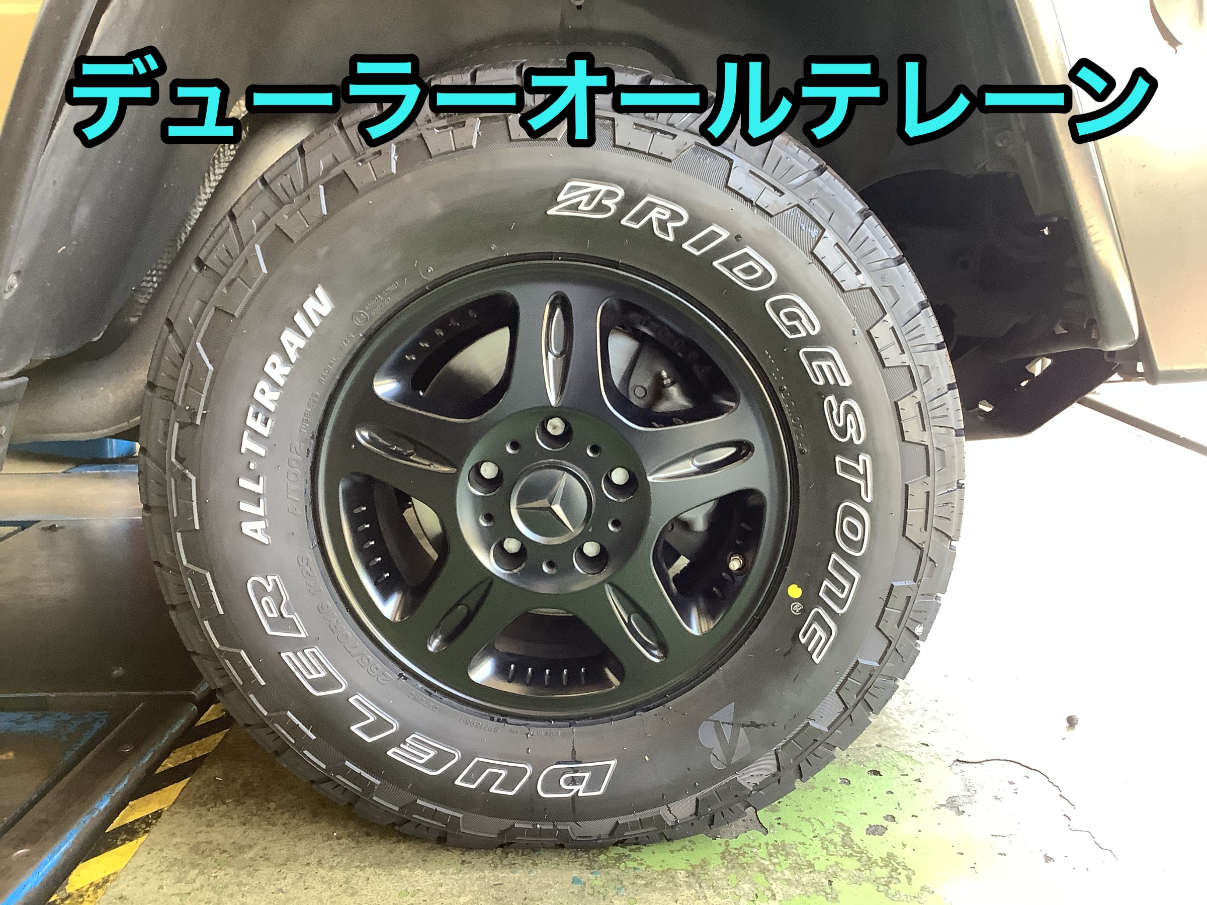 レトロな佇まいでカスタムされているゲレンデのタイヤ交換作業です。