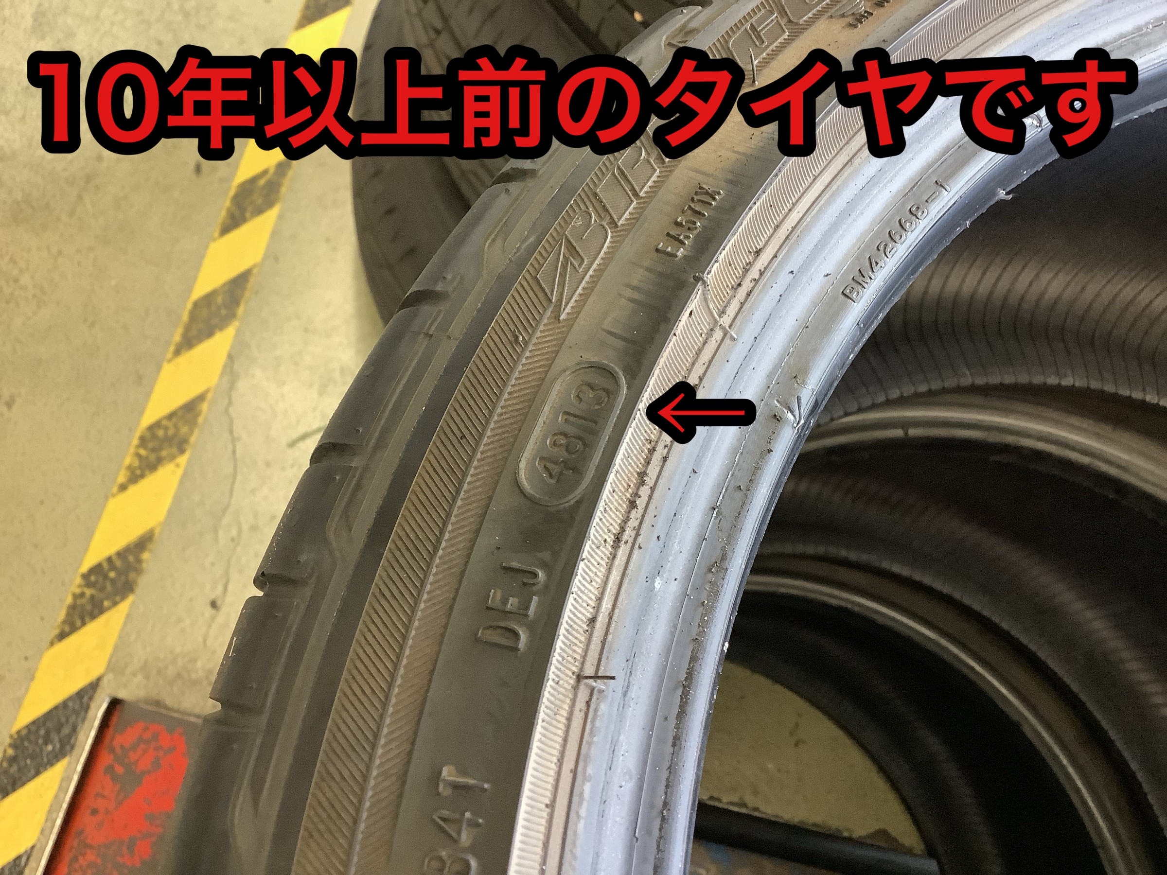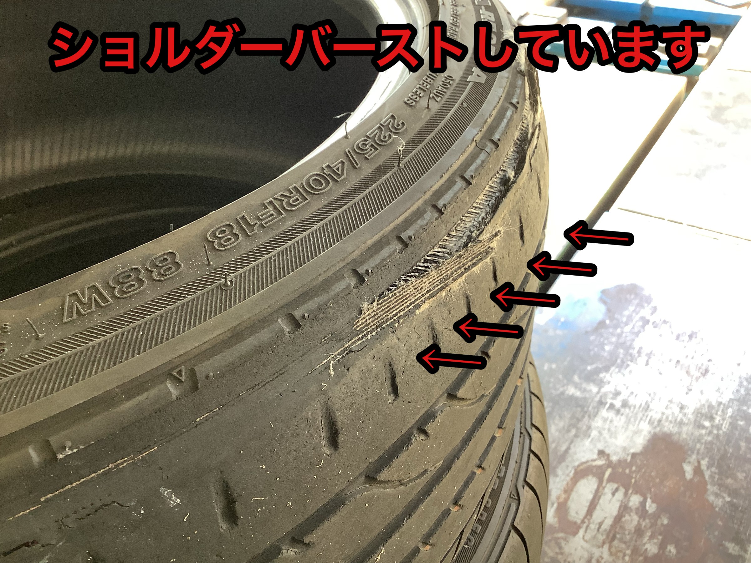 こちらは偏摩耗によるバーストで、タイヤの製造も2013年と新車時のものでした。