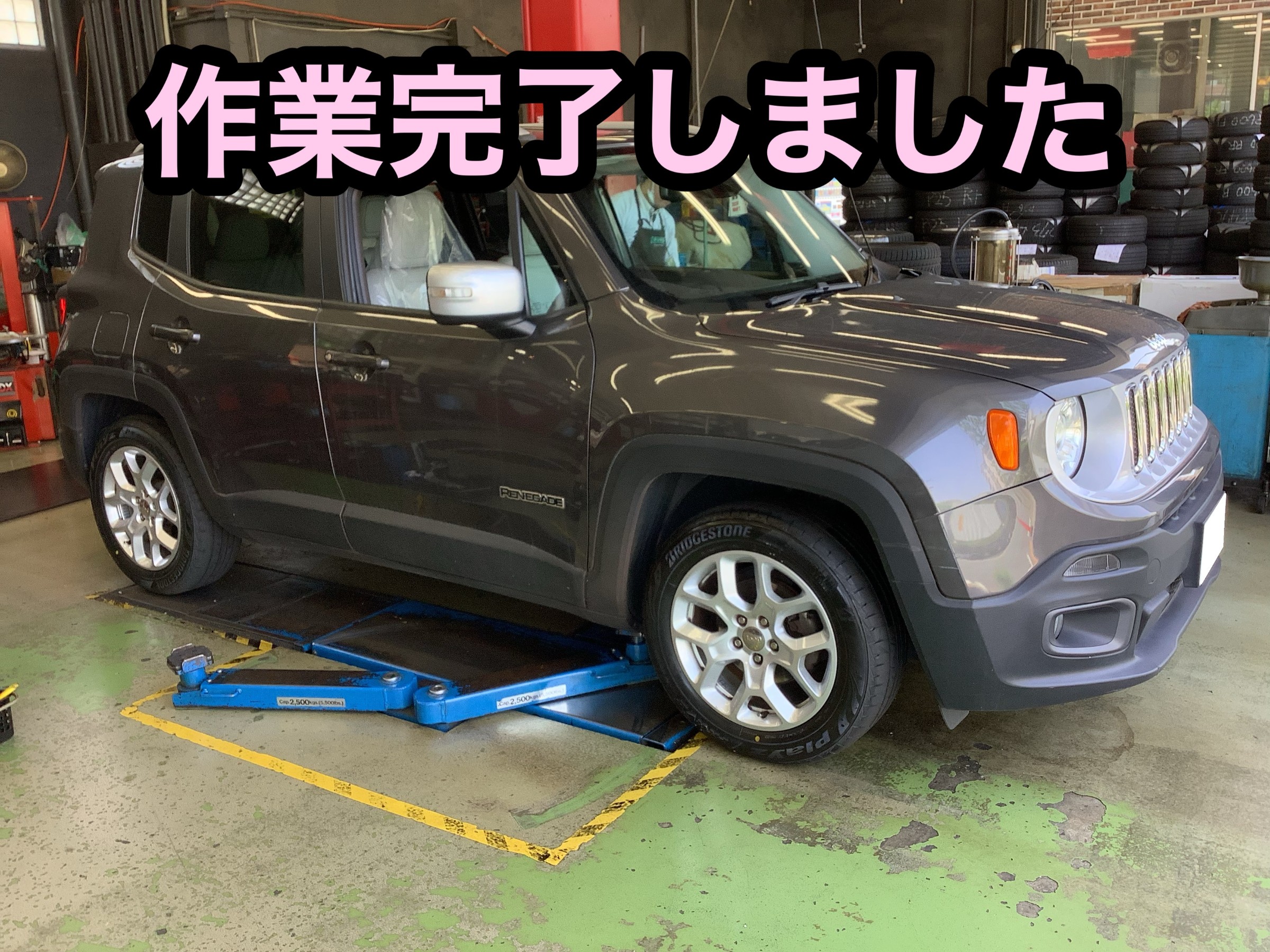 ジープシリーズの中ではコンパクトなレネゲードのタイヤ交換作業です。
