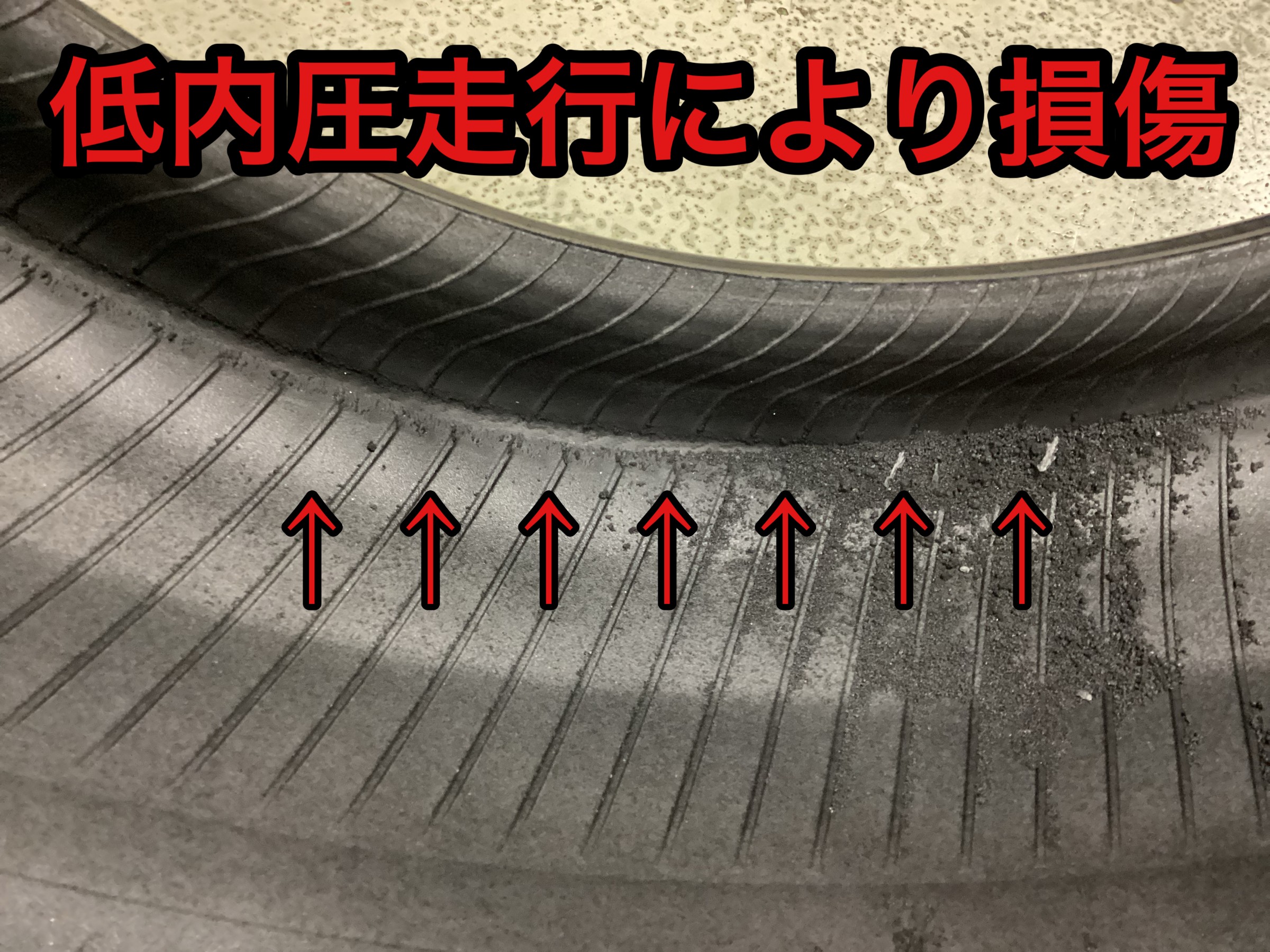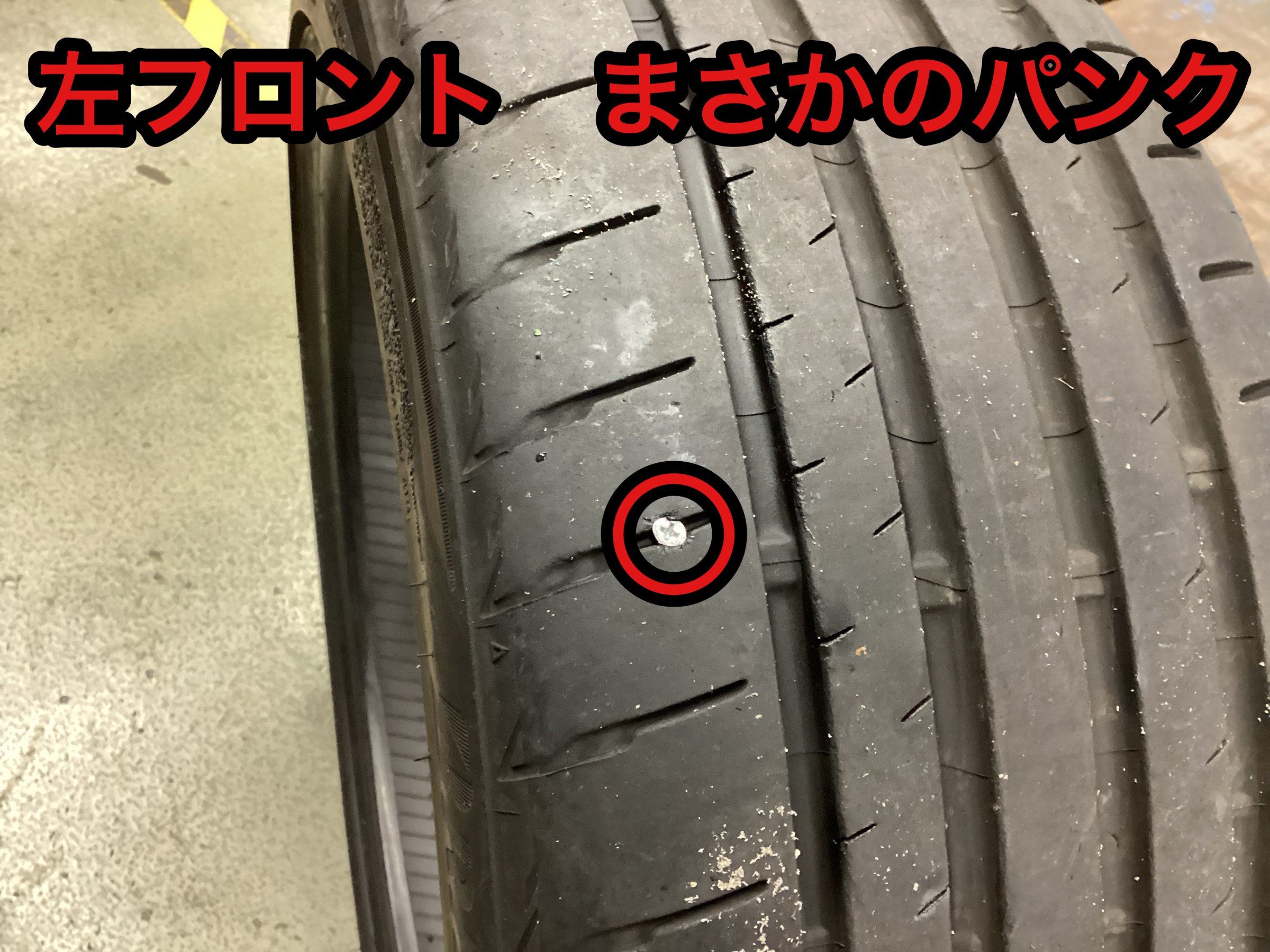 フロントタイヤにネジが刺さっており、内部を確認するとボロボロで修理不可。