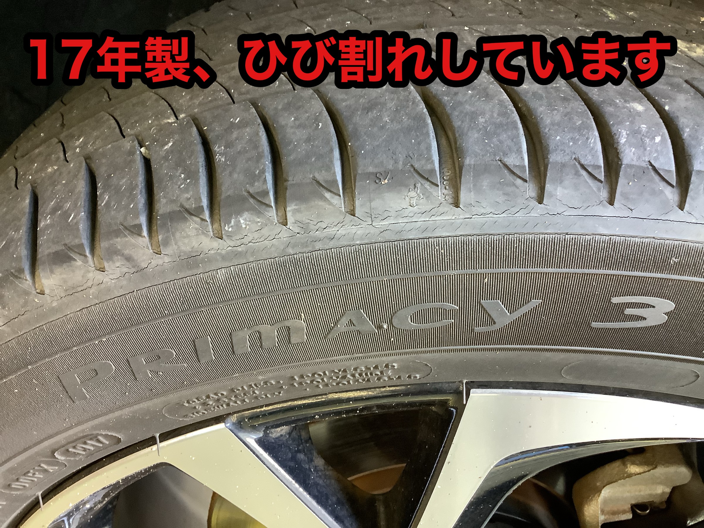 装着されていたタイヤは7年前の物、かなりひび割れしています。