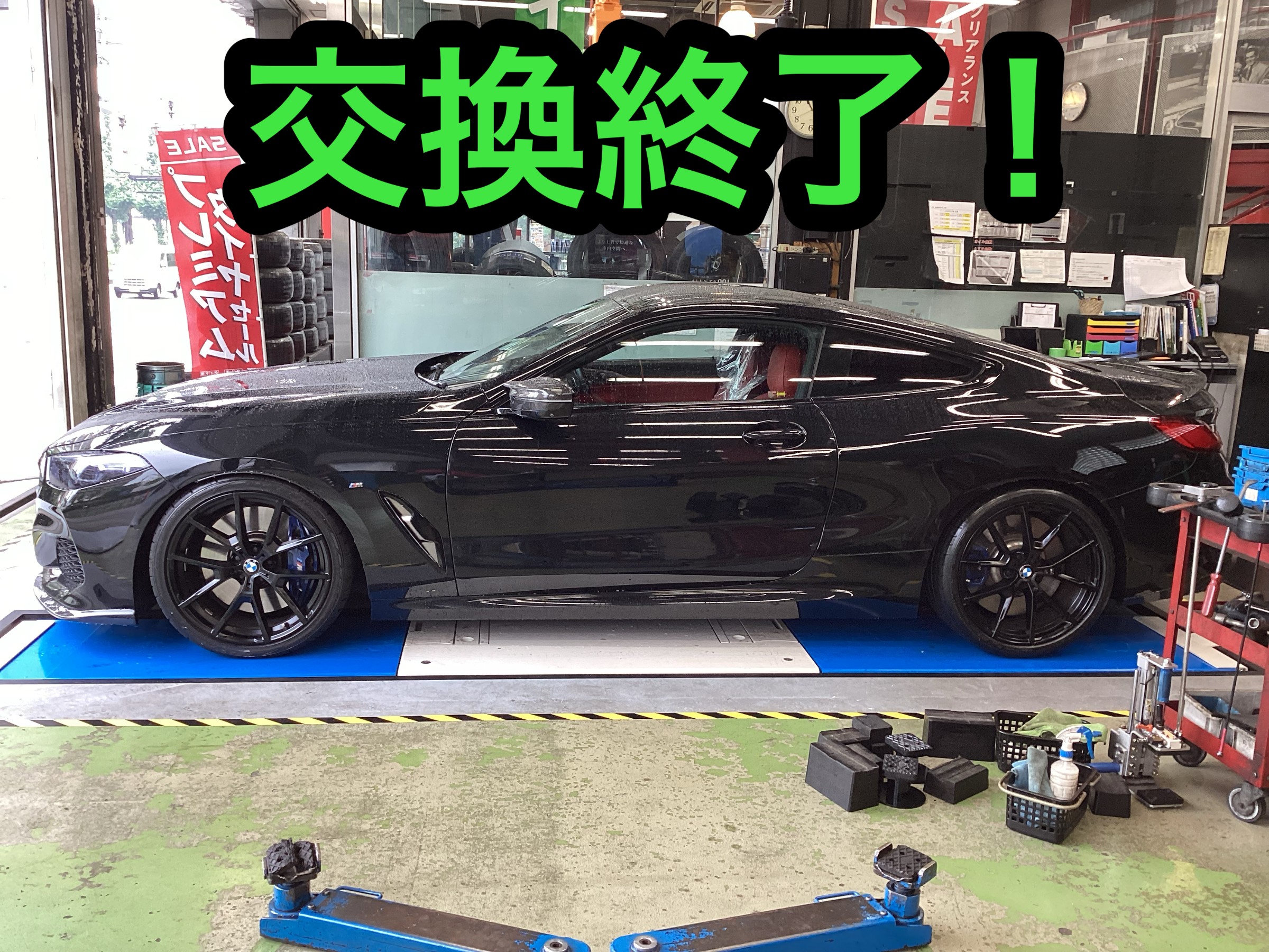 BMWのビッグクーペ 8シリーズのタイヤ交換作業です。
