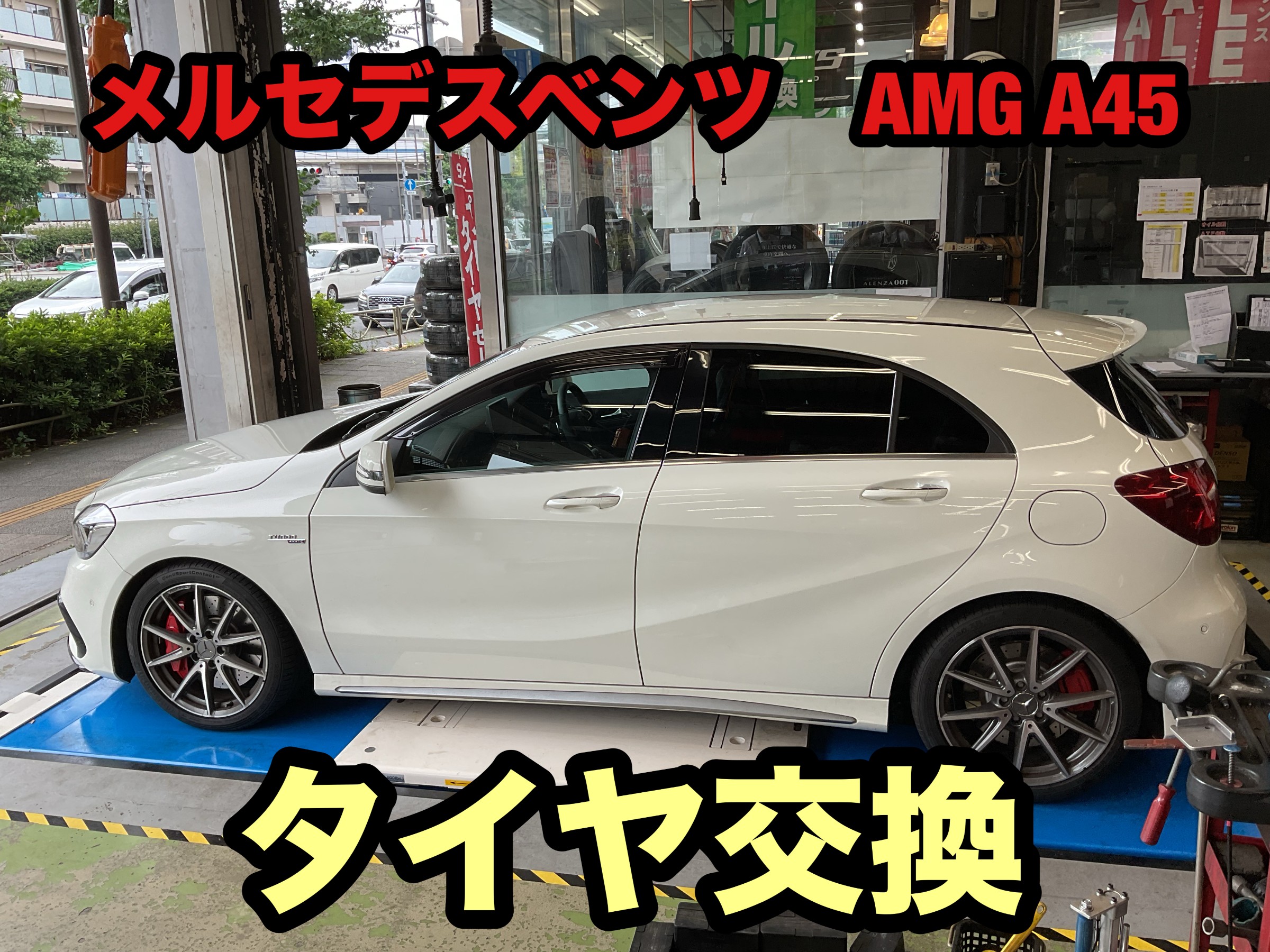ド級なエンジンを搭載したモデル AMG A45のタイヤ交換です。