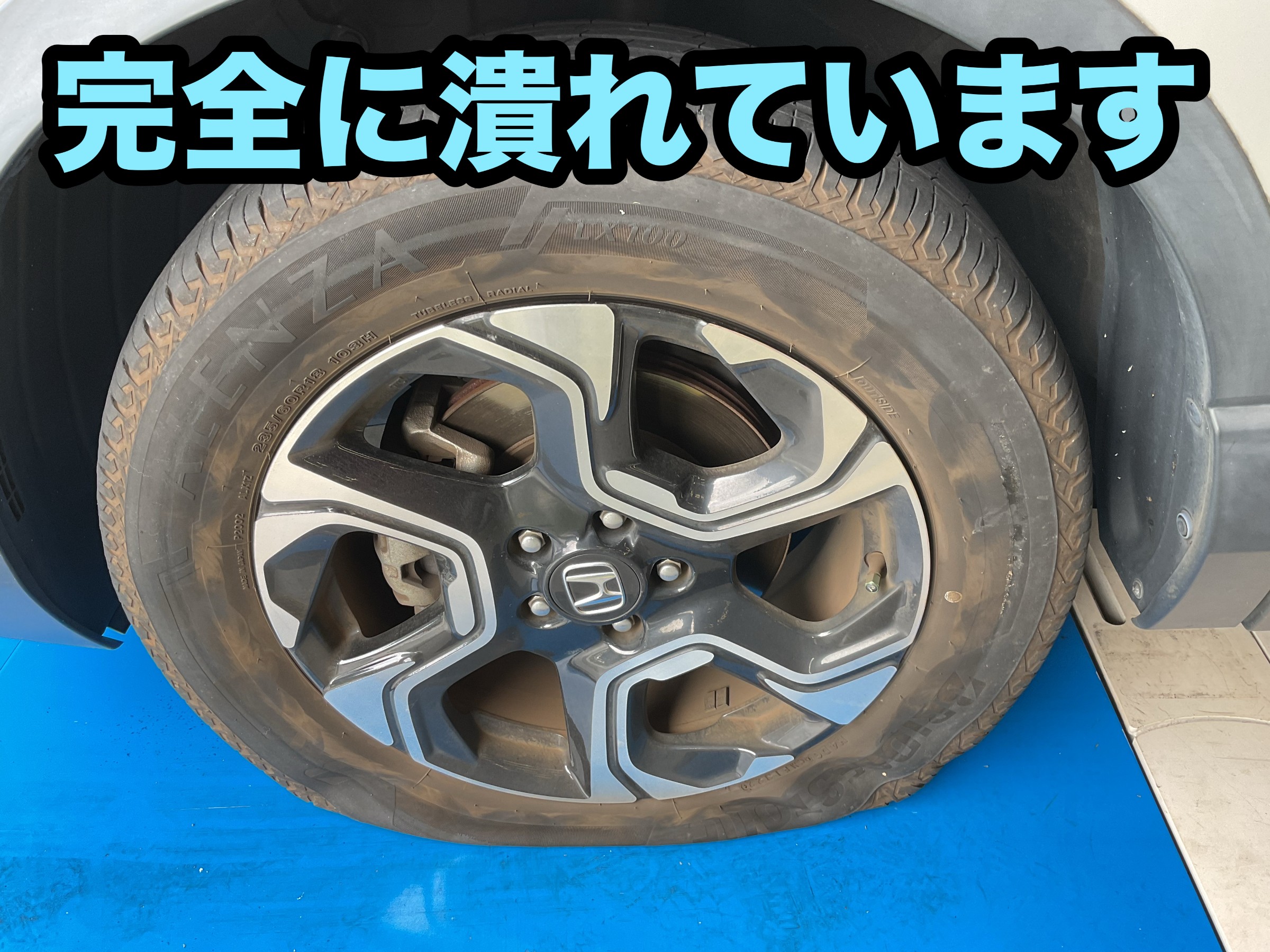 パンクをされ、レッカーで運ばれてきたCR-Vです。