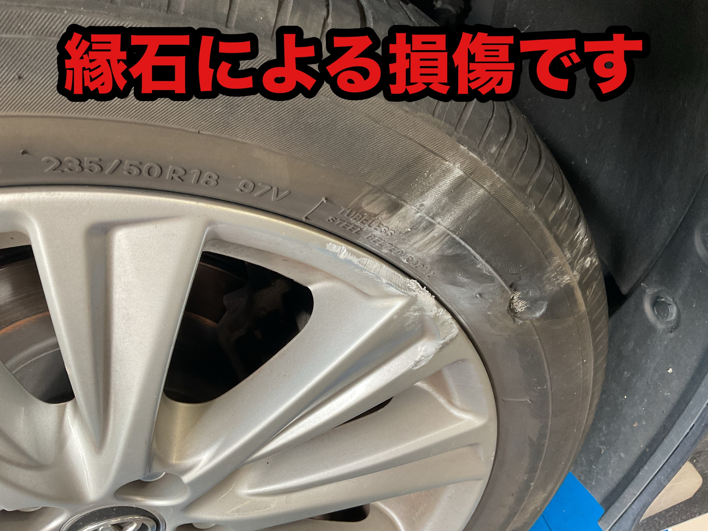 縁石に擦ってしまった事による損傷が交換要因ではありますが、
