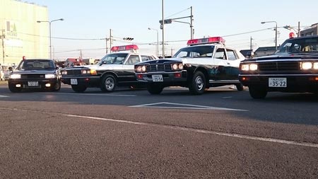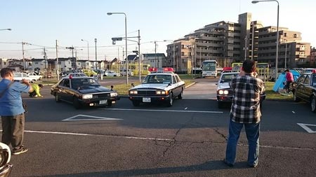 毎年参加しておりますが、年々ネタ車の色合いが濃くなり、今年は打ち合わせをしたわけでもないのに230グロリアの黒パト、330セドリックの白パト、430セドリックの黒パト、430セドリックの白パト、マシンX、スーパーZと、申し合わせたかのように西部警察のクルマが集結しました。