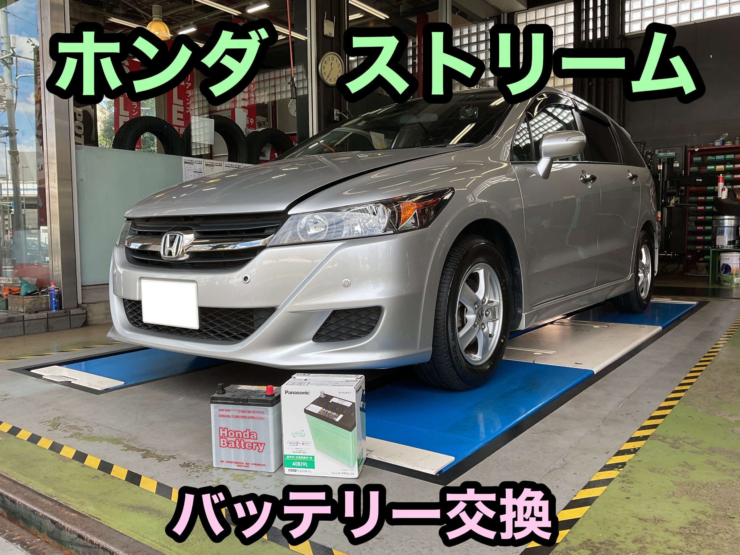 ホンダ ストリーム タイヤ&バッテリー交換!!