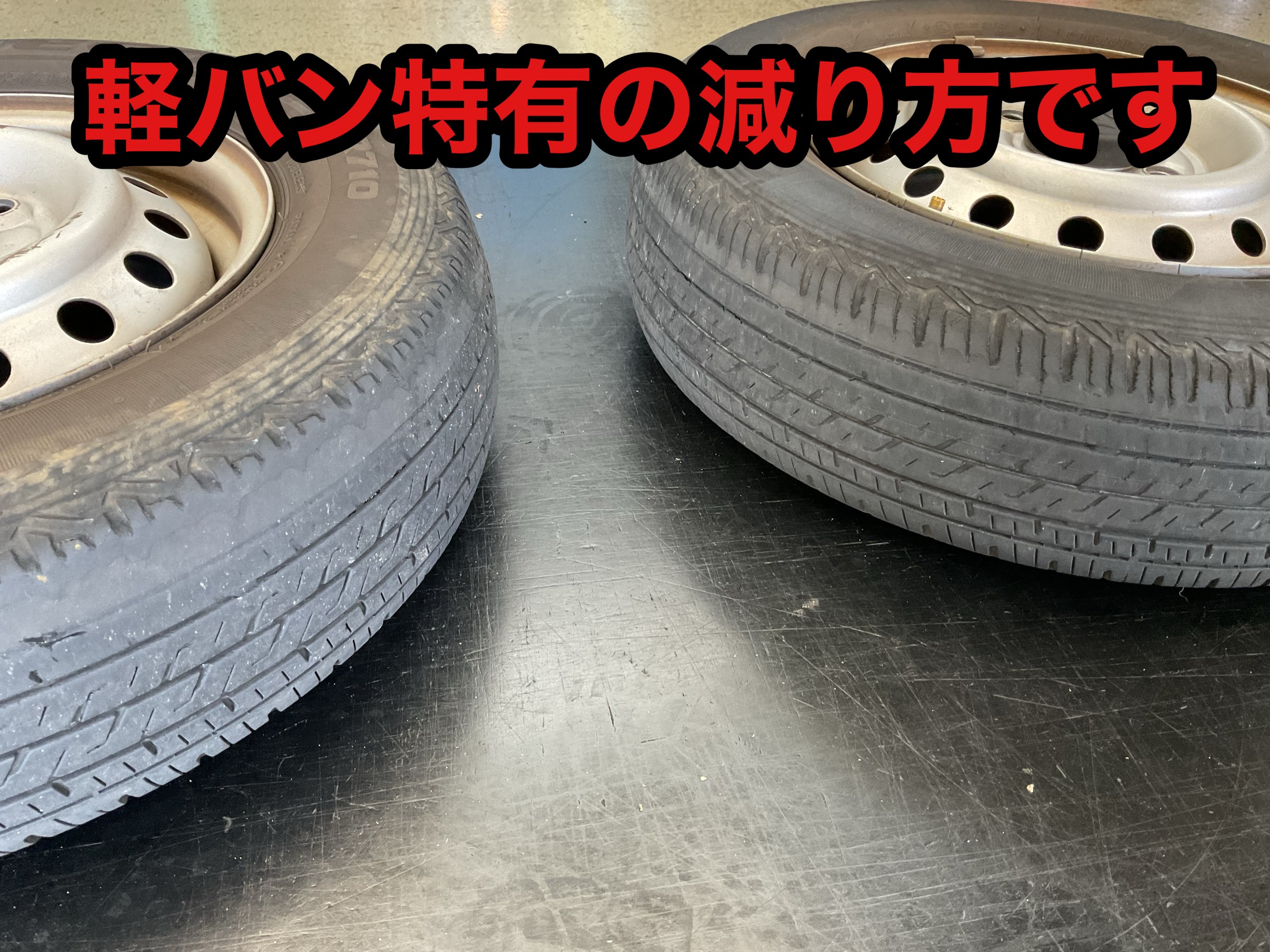 タイヤを確認すると、町中を走行する事が多い軽バン特有の症状でした。
