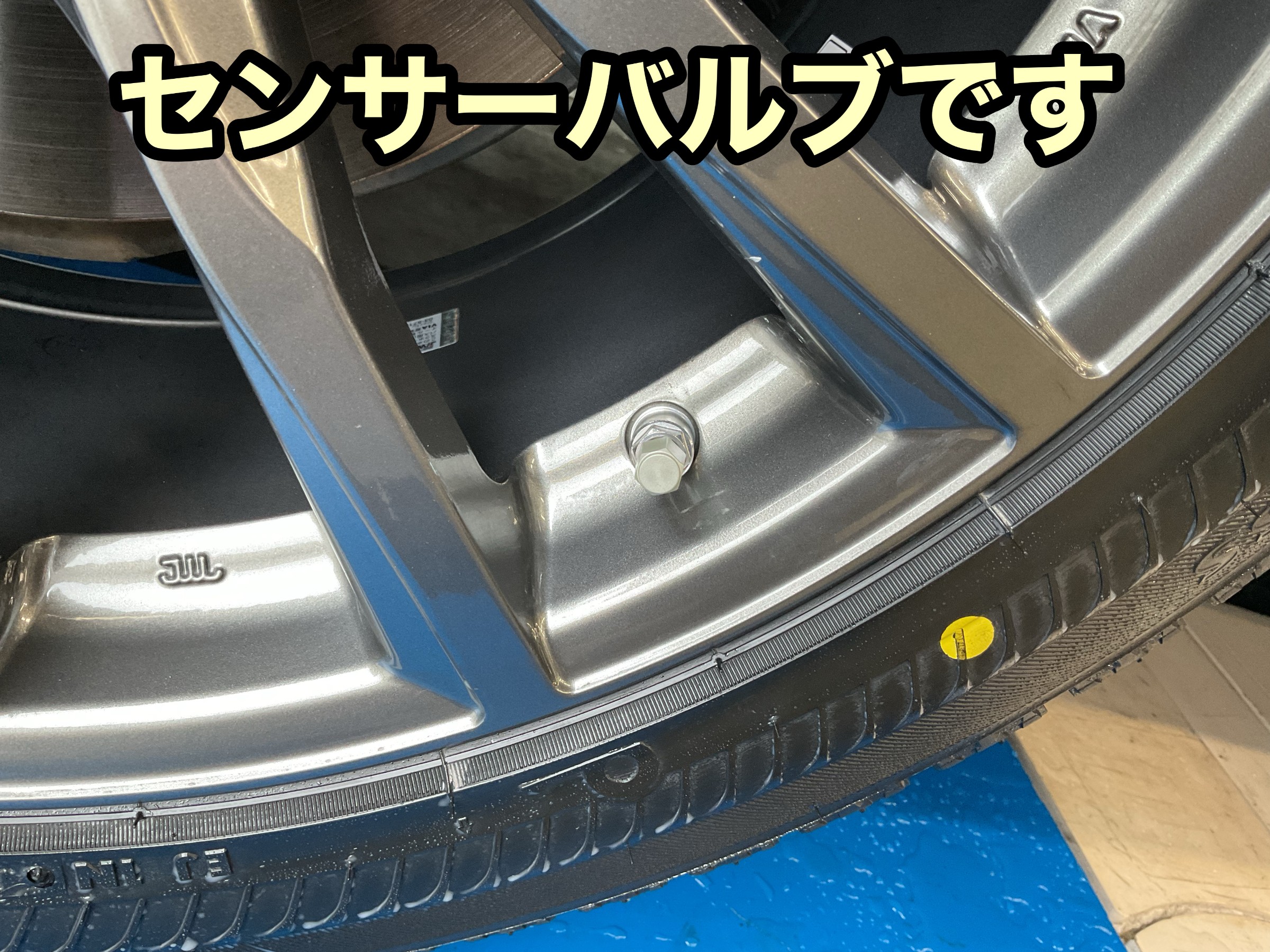 純正ホイールにはTPMS(タイヤ空気圧モニタリングシステム)が付いており、